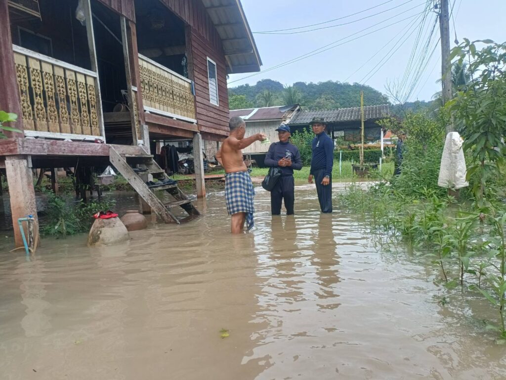 ล่าสุด เรือโท สุโภชน์ ทองย้อย รองผู้บังคับหน่วยปฏิบัติการต่อสู้อากาศยานและรักษาฝั่งที่ 452 เป็นหัวหน้าชุดบรรเทาสาธารณภัย สังกัดทัพเรือภาคที่3 รับผิดชอบในพื้นที่จังหวัดสตูลพร้อมกำลังพล ลงพื้นที่ไปช่วยเหลือชาวบ้านและเข้าสอบถามชาวบ้านที่กำลังรับผลกระทบจากน้ำที่กำลังไหลเข้าท่วมอยู่ในขณะนี้ในพื้นนที่ต่างๆ และช่วยเอาทรายใส่กระสอบเพื่อเอาไปให้ชาวบ้านกันเป็นแนวกันน้ำ ส่วนสถานการณ์ขณะนี้มวลน้ำไหลไปสู่พื้นที่ย่านเศษฐ์กิจตำบลฉลุง อำเภอเมืองสตูล ปริมาณน้ำพบว่าล้นตลิ่งไม่มากนัก ต้องรอดูสถานการณ์คืนนี้ว่าจะมีฝนเติมมาในพื้นที่ต้นน้ำหรือไม่ หากว่าจะทำให้น้ำระบายได้เร็วขึ้น ซึ่งทั้งนี้จะต้องขึ้นอยู่กับปริมาณน้ำทะเลหนุนด้วย ที่จะเป็นปัจจัยเสริม พร้อมฝากเตือนพี่น้องประชาชนที่อยู่ในพื้นที่ลุ่มต่ำ พื้นที่การเกษตรและพื้นที่ติดแม่น้ำ ขอให้ติดตามสถานการณ์การแจ้งเตือนภัยอย่างใกล้ชิด หากเป็นพื้นที่เสี่ยงแนะนำให้ยกของไว้บนที่สูง โดยเฉพาะกลุ่มคนแก่และผู้เปราะบาง