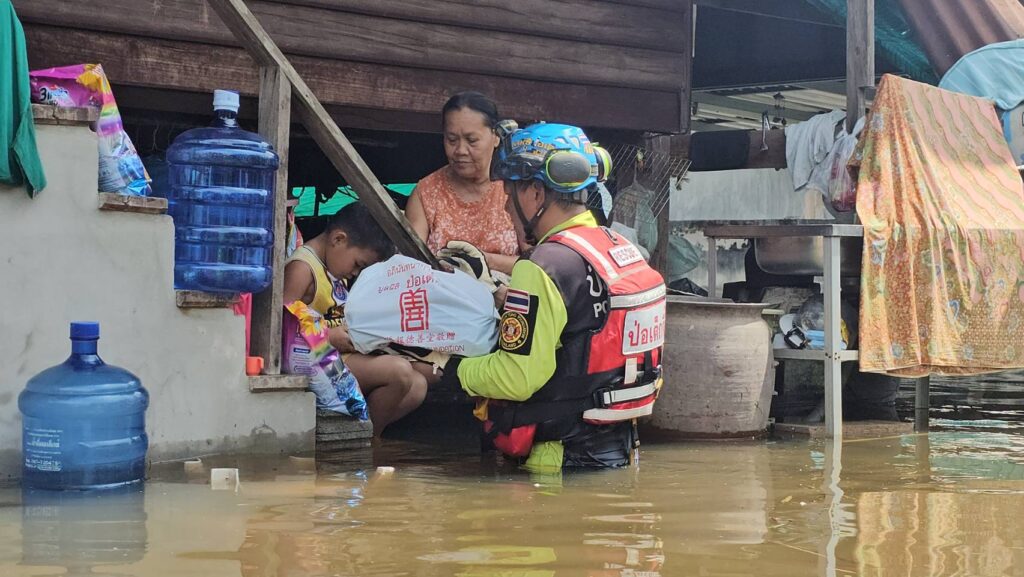 และในขณะนี้ มูลนิธิป่อเต็กตึ๊ง ยังคงอยู่ระหว่างปฏิบัติการภารกิจอพยพในพื้นที่ต่อเนื่อง รวมทั้งประกอบอาหารปรุงสุก พร้อมจัดเตรียมน้ำดื่ม และถุงยังชีพ เพื่อบรรทุกรถและเรือ ลงพื้นที่แจกจ่ายให้แก่ผู้ประสบภัย และเฝ้าติดตามสถานการณ์อย่างต่อเนื่อง เพื่อประเมินและเข้าให้ความช่วยเหลือผู้ประสบภัยด้านต่าง ๆ ต่อไป