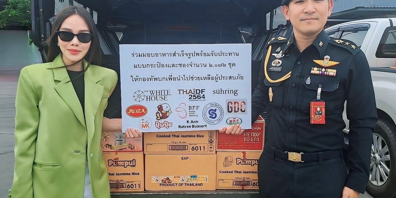 คุณรุ้ง ธนิภา พุ่มเรือง (ThaiDF 2564) กล่าวว่า การมอบอาหารสำเร็จรูปพร้อมรับประทานแก่ผู้ประสบภัยน้ำท่วมในครั้งนี้ ได้รับความร่วมมือเป็นอย่างดีจากการสนับสนุนของคุณกิ๊ก รุจิรา สีสุกใส คุณหน่อย พอหทัย เทียนอุบล (ร้านอาหาร The White House Bangkok) คุณเจี๊ยบ พรนภัส ซูริง (ร้านอาหาร Suhring) คุณแอน ราตรี บัวเสริฐ คุณปอ ศจิกา ทองสุข (ผู้ก่อตั้ง BFF) คุณหมอส้ม ทัตนแพทย์หญิงเมทินี ใจเที่ยง (GDC Dental clinic) และคุณนัท ณัฐดนัย เจริญลาภนพรัตน์ (จ.เจริญทรัพย์พาณิชย์) และที่ขาดไม่ได้เลยคือ คุณเกตุ กุลเกตุ โตทับเที่ยง (ผลิตภัณฑ์ตราปุ้มปุ้ย) โดยพวกเราทั้งหมดหวังเป็นอย่างยิ่งที่จะเป็นอีกหนึ่งกำลังใจและเป็นอีกหนึ่งความช่วยเหลือให้กับพี่น้องผู้ประสบอุทกภัยทั้งในภาคเหนือและภาคอีสานในครั้งนี้