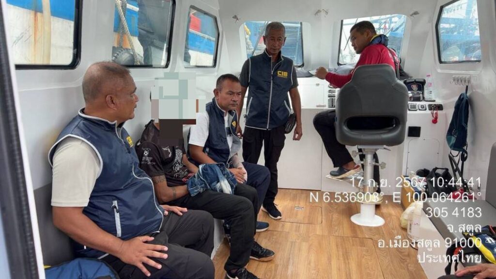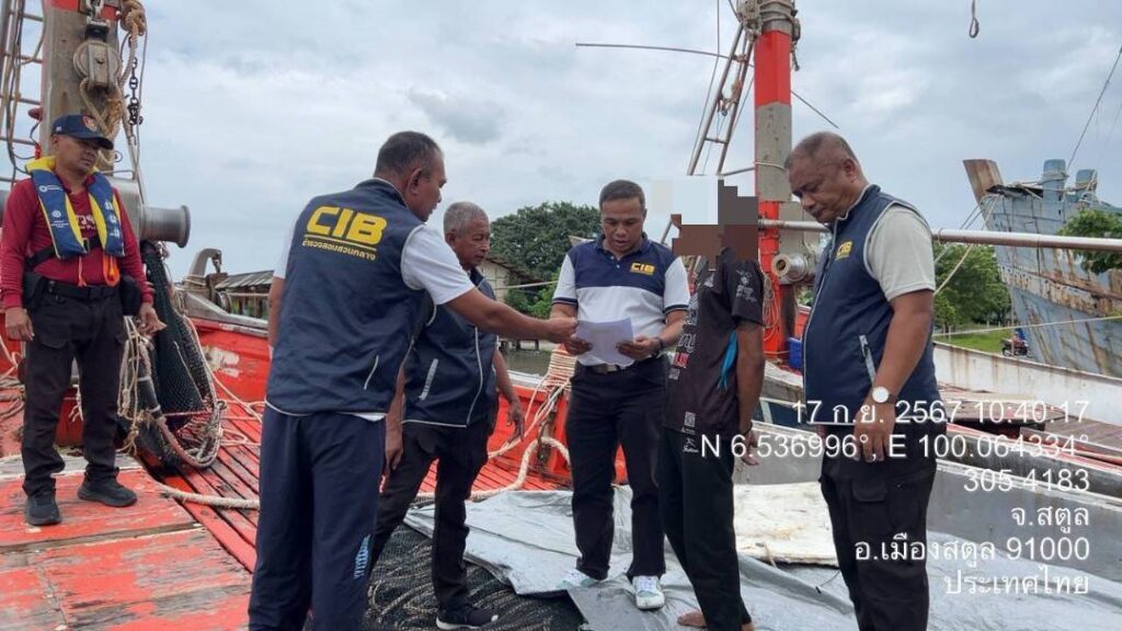 สถานที่จับกุม ในเรือประมงบริเวณท่าเทียบเรือประมงสตูลองค์การสะพานปลา ม.3 ต.ตำมะลัง อ.เมืองสตูล จ.สตูล (พิกัด 6.3213, 100.351) ในวันที่ 17 กันยายน 2567 เวลาประมาณ 11.00 น