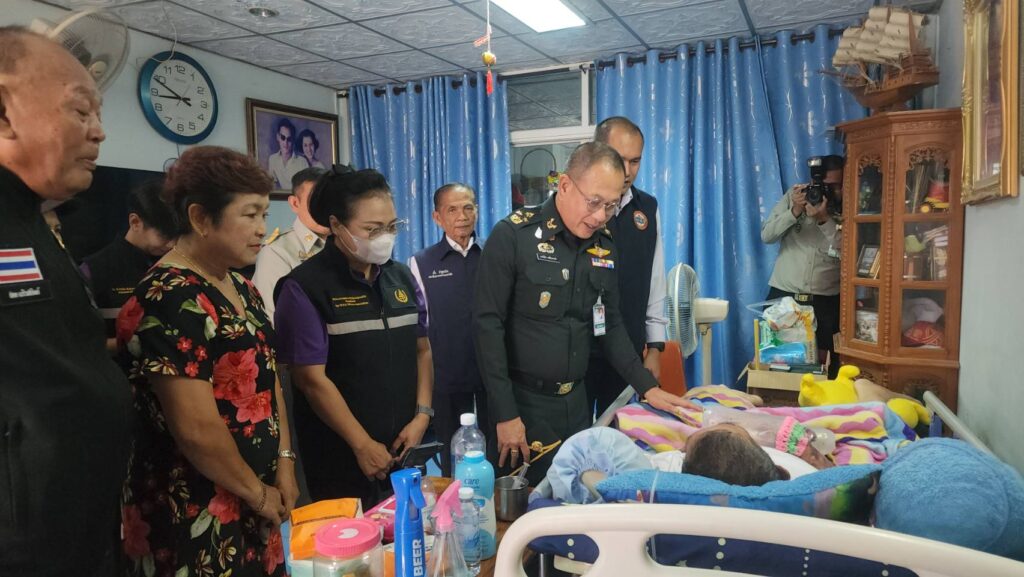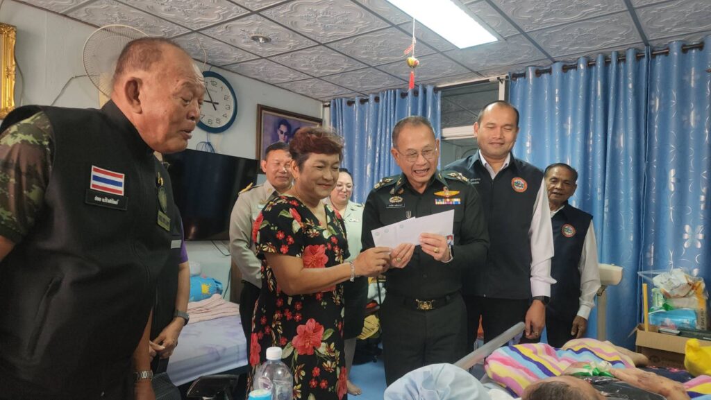 วันที่ 19 กันยายน 2567 ผู้สื่อข่าวรายงานว่า ที่บ้านเลขที่ 589 ซ.รังสิตนครนายก21 ตำประชาธิปัตย์ อ.ธัญบุรี จ.ปทุมธานี พล.อ.เดชนิธิศ เหลืองงามขำ ผู้อำนวยการองค์การสงเคราะห์ทหารผ่านศึก และชมรมทหารผ่านศึกจังหวัดปทุมธานี ได้ลงพื้นที่เพื่อเข้าตรวจเยี่ยมและมอบเครื่องอุปโภคบริโภค และมอบเงินช่วยเหลือให้กับ พ.อ.อ.สมพงษ์ ประหยัดทรัพย์ อายุ 74 ปี เป็นผู้ป่วยพิการติดเตียง