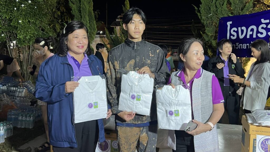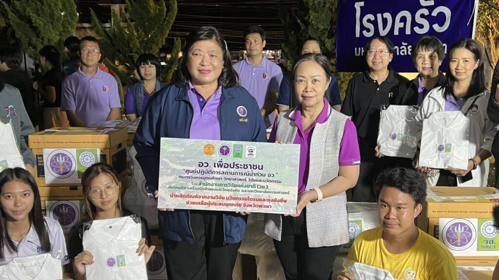 ดร.วิภารัตน์ ดีอ่อง ผู้อำนวยการสำนักงานการวิจัยแห่งชาติ พร้อมนายพิศิษฐ์ มิตรเกื้อกูล นายกสมาคมกีฬาเครื่องบินจำลองและวิทยุบังคับ เดินทางยังมหาวิทยาลัยพะเยา โดยได้มีการนำเครื่องอุปโภคบริโภค โดยเฉพาะน้ำพริกแบรนด์ช้างยิ้มจากพื้นที่ป่ารอยต่อ , สบู่และแชมพูมะพร้าวออแกนิคจากเกาะสมุย ซึ่งเป็นผลิตภัณฑ์ที่ได้รับการสนับสนุน จากสำนักงานการวิจัยแห่งชาติ กระทรวง อว. รวมถึงข้าวของเครื่องใช้ที่จำเป็น โดยเฉพาะเสื้อผ้า,เครื่องนุ่งห่ม,และที่นอน ส่งมอบให้กับนิสิต นักศึกษา และรองศาสตราจารย์ ดร.สุภกร พงศ์บางโพธิ์ อธิการบดีมหาวิทยาลัยพะเยา เป็นตัวแทนในการรับมอบ เพื่อนำไปแจกจ่ายให้ทั่วถึง ตามนโยบายของนางสาวศุภมาส อิศรภักดี รัฐมนตรีว่าการกระทรวงการอุดมศึกษา วิทยาศาสตร์ วิจัยและนวัตกรรม ที่สั่งการให้เร่งเข้าช่วยเหลือเพื่อบรรเทาความเดือดร้อน และเป็นการเบื้องต้น ส่วนใครที่ได้รับผลกระทบจำพวก เครื่องใช้ไฟฟ้ารถยนต์และรถจักรยานยนต์ ทางมหาวิทยาลัยพะเยาและสำนักงานการวิจัยแห่งชาติ ได้จัดเตรียมความพร้อมที่จะให้ นิสิต นักศึกษา ที่มีจิตอาสาในการช่วยเหลือสังคมโดยเฉพาะการมาอำนวยความสะดวกเกี่ยวกับเรื่องของการซ่อมแซม ให้สามารถนำมาใช้งานได้ตามปกติอีกด้วยเช่นกัน