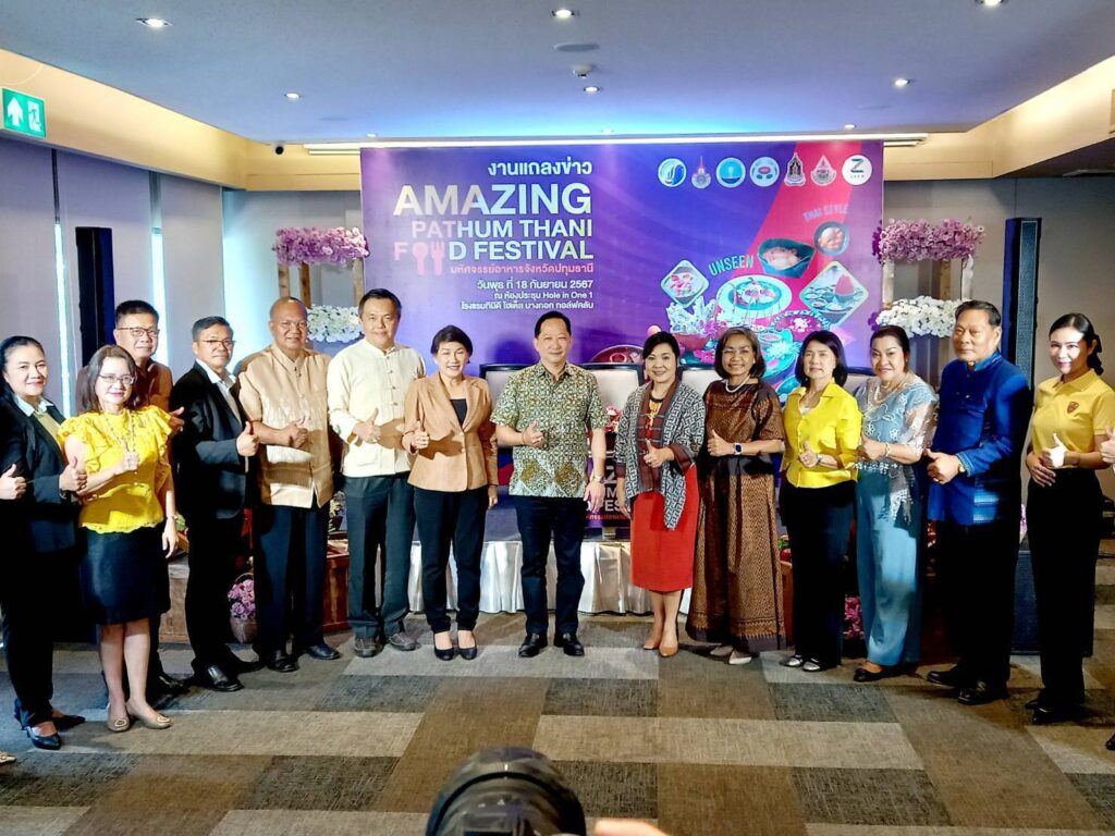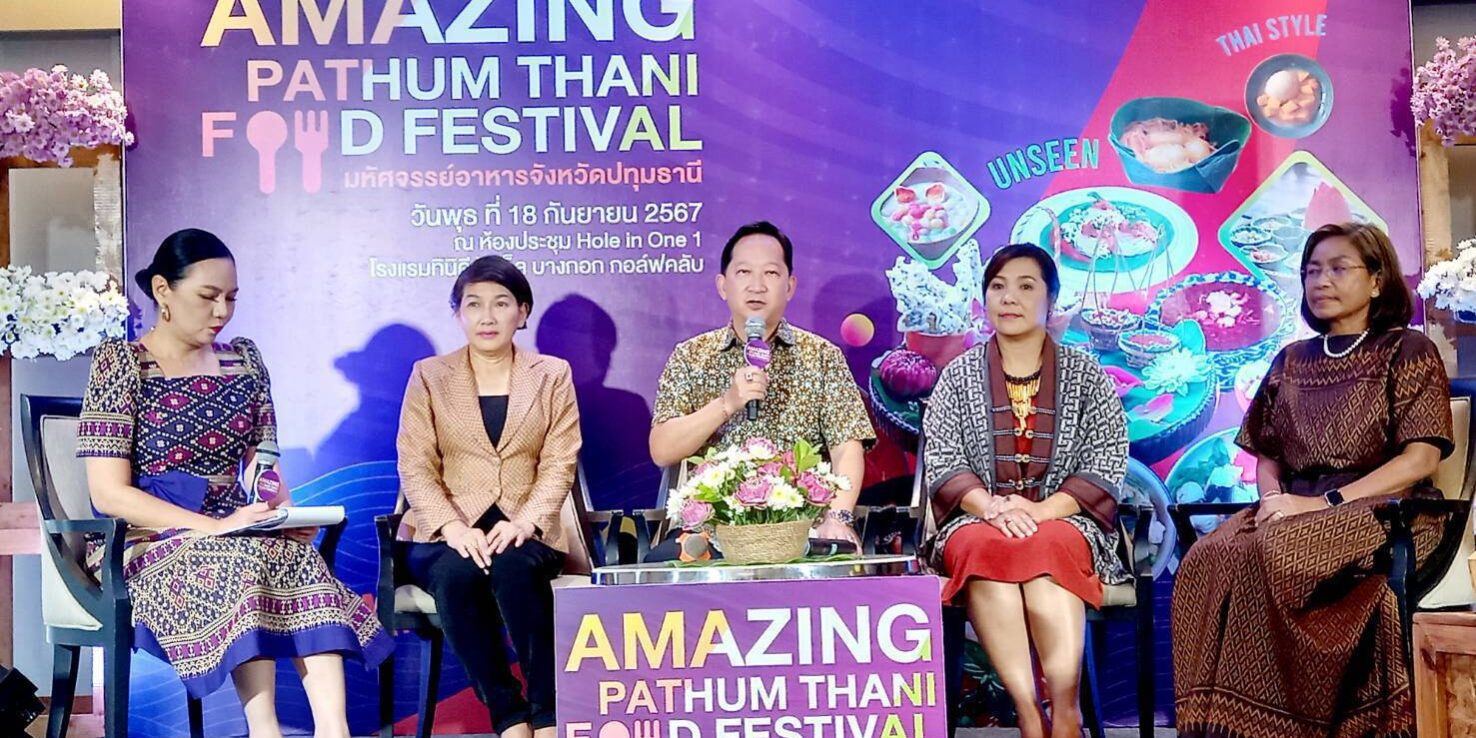 เมื่อวันที่ 18 ก.ย.67 เวลา 14.00 น. ณ โรงแรมทินิดี โฮเต็ล บางกอก กอล์ฟคลับ อำเภอเมืองปทุมธานี จังหวัดปทุมธานี นายภาสกร บุญญลักษม์ ผู้ว่าราชการจังหวัดปทุมธานี พร้อมด้วย นางลัษมา ธารีเกษ วัฒนธรรมจังหวัดปทุมธานี นางสาวแสงจันทร์ แก้วประทุมรัสมี ท่องเที่ยวและกีฬาจังหวัดปทุมธานี รศ.ดร.สาคร ชลสาคร คณบดีคณะเทคโนโลยีคหกรรมศาสตร์ มหาวิทยาลัยเทคโนโลยีราชมงคลธัญบุรี แถลงข่าวส่งเสริมการท่องเที่ยวเชิงอาหาร(Gastronomy Tourism) จังหวัดปทุมธานี “เทศกาลมหัศจรรย์อาหารจังหวัดปทุมธานี”