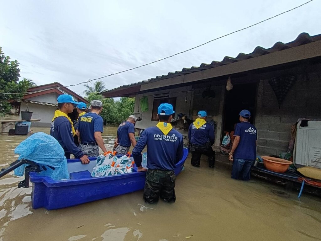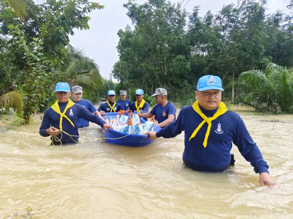 พลเรือโท สุชาติ ธรรมพิทักษ์เวช ผู้บัญชาการทัพเรือภาคที่ 3 มอบหมายให้ นาวาโท ธนภูมิ ประทีป ผู้บังคับหน่วยปฏิบัติการต่อสู้อากาศยานและรักษาฝั่งที่ 452,เรือโท สุโภชน์ ทองย้อย รองผู้บังคับหน่วยปฏิบัติการต่อสู้อากาศยานและรักษาฝั่งที่ 452,เรือหลวงมันนอกเรือปฎิบัติการทัพเรือภาคที่3และกำลังพลชุดจิตอาสาพร้อมด้วยหมอทหาร และกำลังพล ลงพื้นที่ลุยน้ำที่มีระดับสูงถึง 1 เมตร นำยา เช่น ยาแก้ปวดหัว ยาทาแก้น้ำกัดเท้า ยาดม ยาหม่อง ลงพื้นที่หมู่บ้านปันจอร์ หมู่ที่ 7 ตำบลยานซื่อ อำเภอควนโดน จังหวัดสตูล และในพื้นที่บ้านห้วยมะพร้าว หมู่ 11 ตำบลละงู อำเภอละงู จังหวัดสตูล ส่วนถุงยังชีพ นาวาโท ธนภูมิ ประทีป ผู้บังคับหน่วยปฏิบัติการต่อสู้อากาศยานและรักษาฝั่งที่ 452 ใช้เงินส่วนตัวซื้อและแจกให้กับชาวบ้าน และหมอทหารเรือลงไปตรวจวัดไข้ ความดัน โดยเฉพาะกลุ่มผู้สูงอายุ ส่วนใหญ่กลุ่มเหล่านี้ได้พูดคุยกับหมอทหารเรือ เกี่ยวกับความเครียด ความกังวลและนอนไม่หลับ เรื่องน้ำท่วม หมอทหารเรือจึงให้ยาผ่อนคลาย เข้าพูดคุยให้กำลังใจ จนผู้สสูงอายุ ยิ้มหัวเราะออกมา