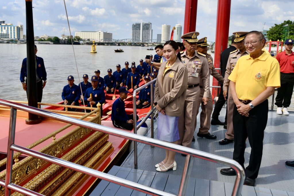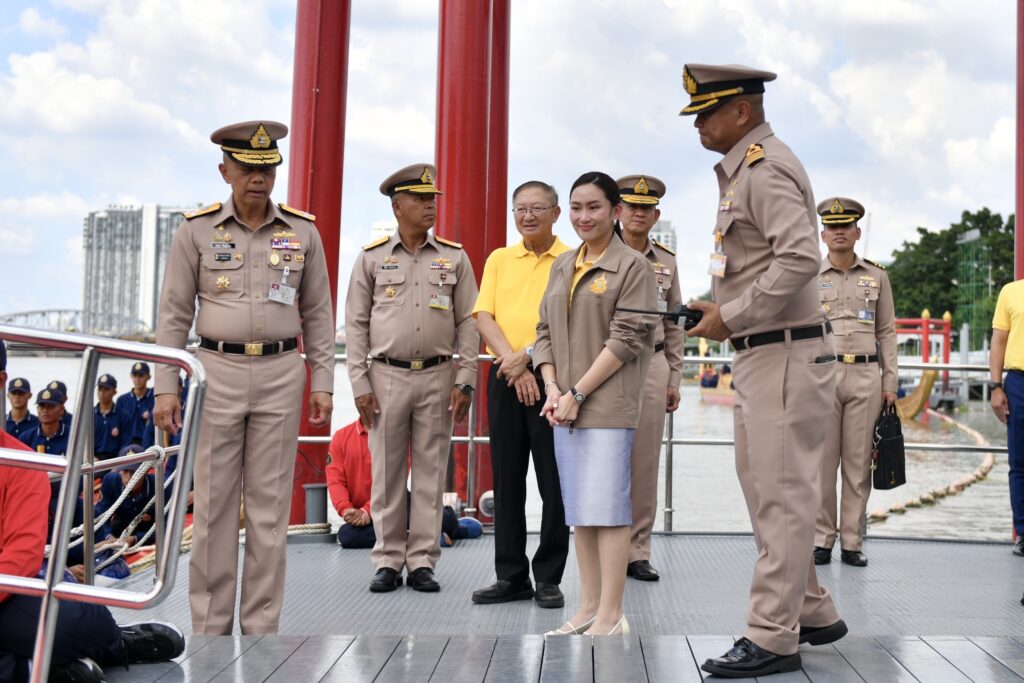 วันนี้ (19 กันยายน 2567) เวลา 14.45 น. ที่โรงเรือพระราชพิธี ท่าวาสุกรี นางสาวแพทองธาร ชินวัตร นายกรัฐมนตรี ตรวจขั้นตอนการปฏิบัติและความพร้อมของการจัดขบวนพยุหยาตราทางชลมารค ในการพระราชพิธีเสด็จพระราชดำเนินถวายผ้าพระกฐิน ณ วัดอรุณราชวรารามราชวรวิหาร โดยมี พลเรือเอก อะดุง พันธุ์เอี่ยม ผู้บัญชาการทหารเรือ พลเรือโท วิจิตร ตันประภา รองเสนาธิการทหารเรือ/ประธานคณะกรรมการจัดเตรียมความพร้อมขบวนเรือพระราชพิธี ร่วมให้การต้อนรับ พร้อมจัดให้มีการบรรยายสรุปขั้นตอนและการเตรียมความพร้อมของขบวนพยุหยาตราทางชลมารค รวมถึงการดำเนินการของหน่วยต่างๆ ที่เกี่ยวข้อง จากนั้นนายกรัฐมนตรีได้นั่งรถยนต์ส่วนตัวเดินทางจากท่าวาสุกรีไปยังวัดอรุณราชวรารามราชวรมหาวิหาร เพื่อรับชมขั้นตอนการปฏิบัติในการรับเสด็จพระราชดำเนินฯ และการซ้อมเป็นรูปขบวนเรือในแม่น้ำเจ้าพระยา ครั้งที่ 7