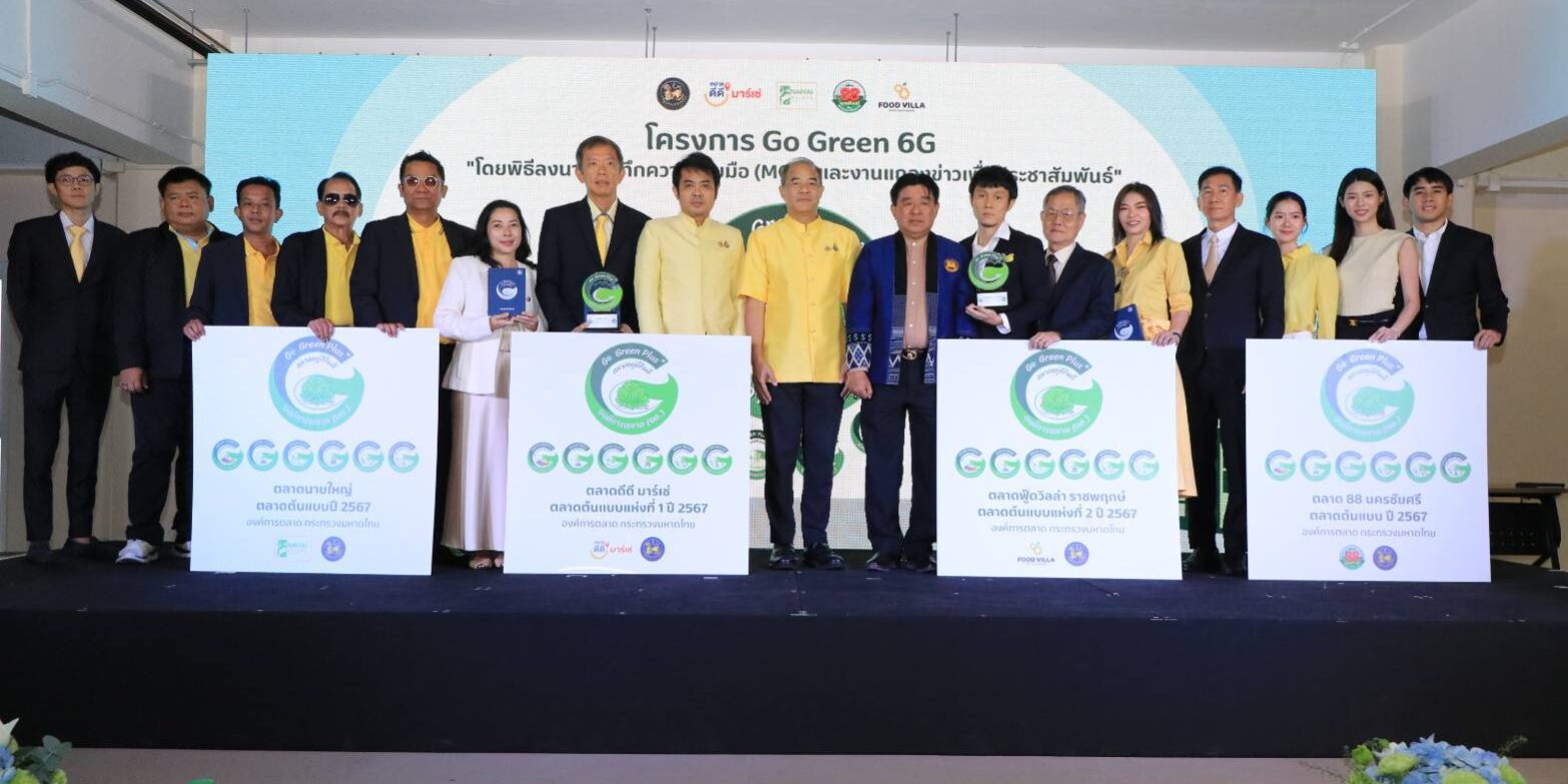 สำหรับโครงการ Go Green 6G เป็นการบูรณาการความร่วมมือระหว่างองค์การตลาดกับหน่วยงานต่างๆ โดยเน้นการมีส่วนร่วมในการดำเนินการจากตลาดเครือข่าย สามารถขับเคลื่อนองค์การไปสู่เป้าหมายที่กำหนดไว้ได้อย่างมีจุดมุ่งเน้นทิศทางที่ชัดเจน ตามที่กำหนดในแผนยุทธศาสตร์ เพื่อนำไปสู่การเป็นตลาดต้นแบบมาตรฐาน โครงการพัฒนาตลาดต้นแบบ Go Green 6G ครอบคลุม 6 มิติ ได้แก่
