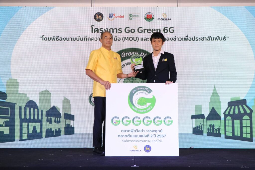 - “ตลาดฟู้ดวิลล่า ราชพฤกษ์” โดยมี นายภคเวศย์ ทับประยูร กรรมการผู้จัดการตลาดฟู้ดวิลล่า ราชพฤกษ์ ขึ้นรับ โล่รางวัล พร้อมป้ายตราสัญลักษณ์ โครงการตลาดต้นแบบ Go Green 6G
