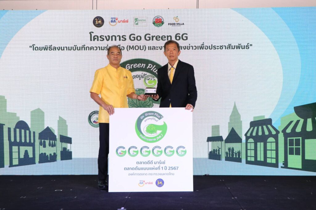 - “ตลาดดีดี มาร์เช” โดยมี นายวีรชัย พิพัฒน์พวงทอง ประธานตลาดดีดี มาร์เช่ ขึ้นรับโล่รางวัล พร้อมป้ายตราสัญลักษณ์ โครงการตลาดต้นแบบ Go Green 6G