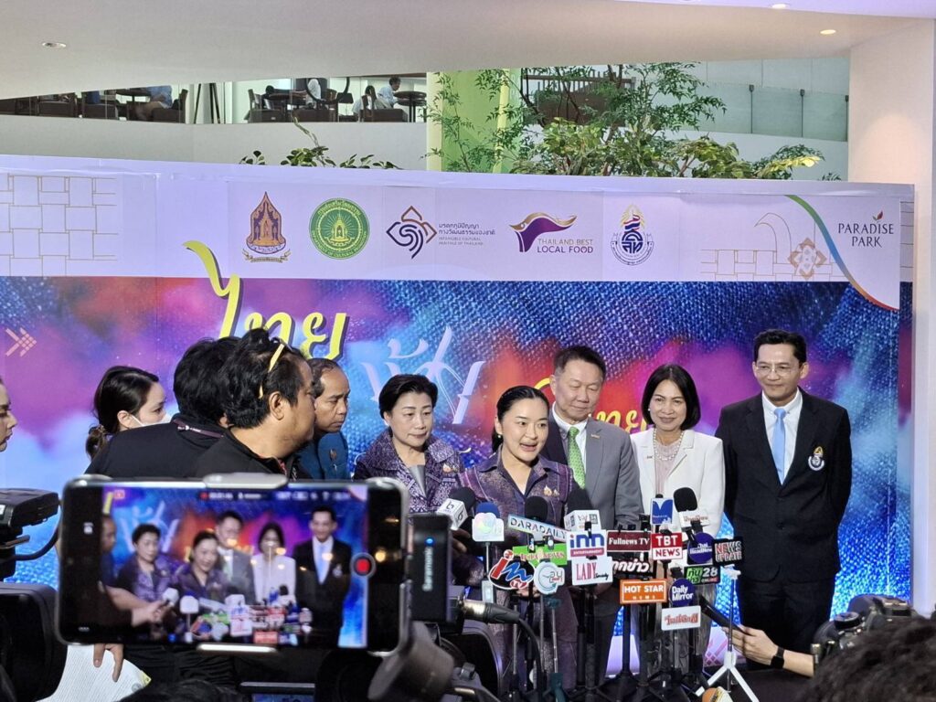 กระทรวงวัฒนธรรม โดยกรมส่งเสริมวัฒนธรรม จัดพิธีเปิดงาน “ไทยฟุ้ง ปรุงไทย” (Thai Taste Thai Fest 2024) โดยมี นางสาวสุดาวรรณ หวังศุภกิจโกศล รัฐมนตรีว่าการ กระทรวงวัฒนธรรม เป็นประธาน นางยุพา ทวีวัฒนกิจบวร ปลัดกระทรวงวัฒนธรรม พร้อมผู้บริหาร นายประสพ เรียงเงิน อธิบดีกรมส่งเสริมวัฒนธรรม นายสมพล ตรีภพนารถ ประธานเจ้าหน้าที่บริหารธุรกิจ ศูนย์การค้าบริษัท เอ็มบีเค จํากัด (มหาชน) นายบริพันธ์ ชัยภูมิ นายกสมาคมนักเพลงลูกทุ่งแห่งประเทศไทย ร่วมด้วยองค์กรภาคีด้านวัฒนธรรม ร่วมงาน ณ Royal Park Plaza ชั้น 1 ศูนย์การค้าพาราไดซ์ พาร์ค กทม.