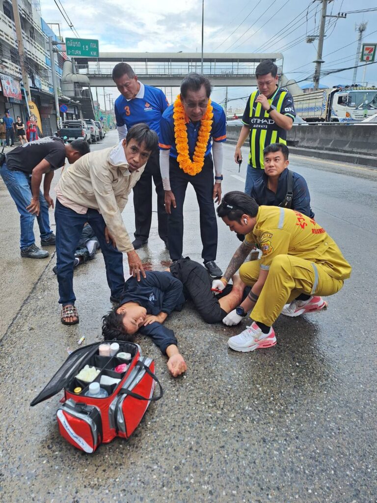 เบื้องต้น ตน และ คุณวัน อยู่บำรุง พร้อมด้วย ทีมงานใจถึงพึ่งได้ ช่วยกันอำนวยความสะดวกการจราจรบนท้องถนน ที่ ขับสัญจรท้องถนน ไม่ติดขัดเกิดอันตราย พร้อมทั้ง ประสาน เจ้าหน้าที่ตำรวจ อาสามูลนิธิร่วมกตัญญู เร่ง มาช่วยผู้บาดเจ็บนำส่งโรงพยาบาลปทุมธานีต่อไป พื้นที่ รับชอบท้องที่ สภ.ปากครองรังสิต