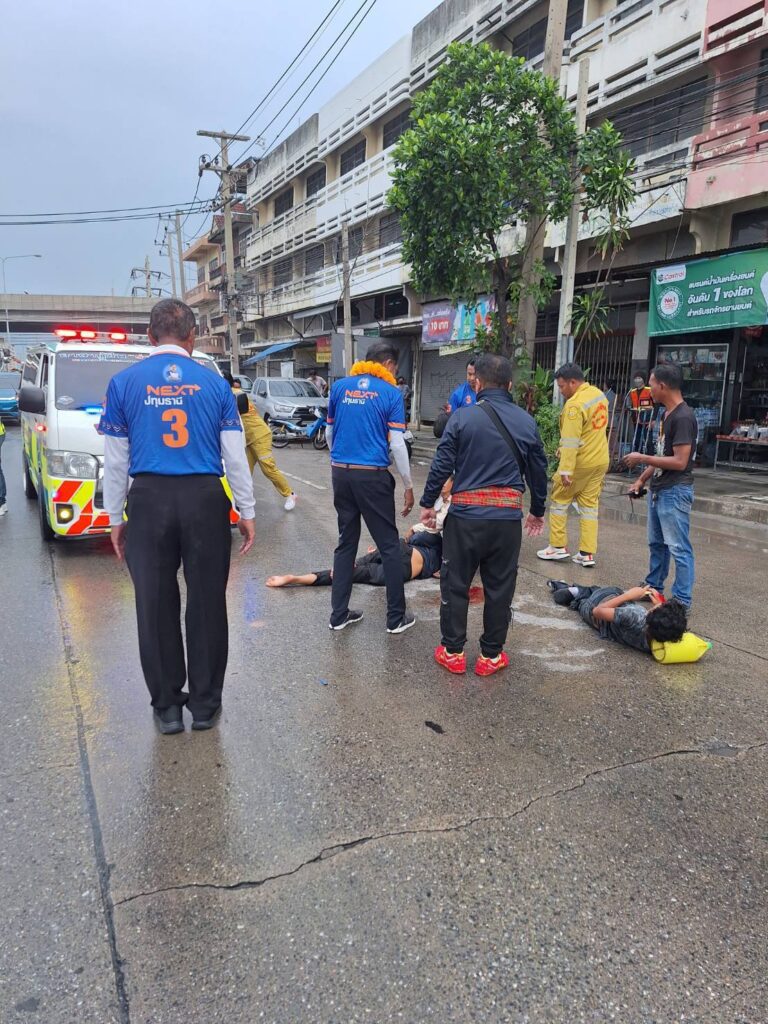 ทั้งนี้บนถนนจุดเกิดเหตุบนถนน พบ รถจักรยานยนต์พลิกคว่ำ และ พบผู้บาดเจ็บ 2 ราย มีอาการบาดเจ็บดังนี้