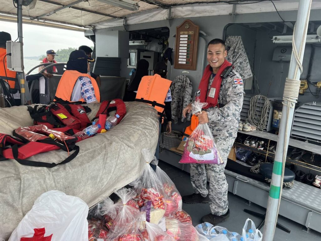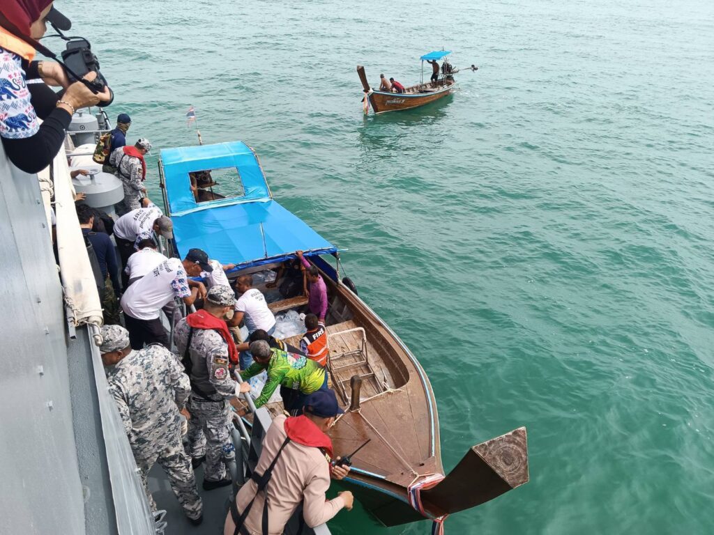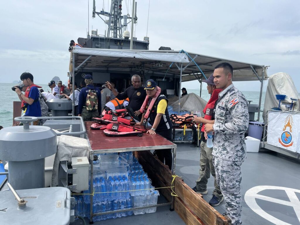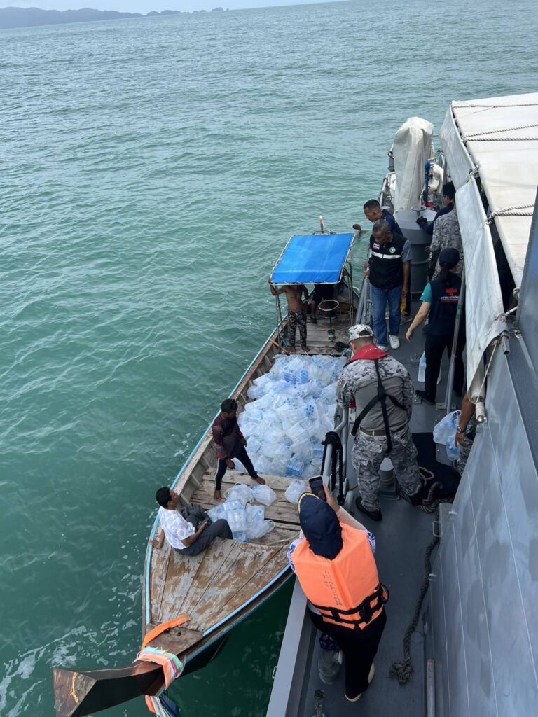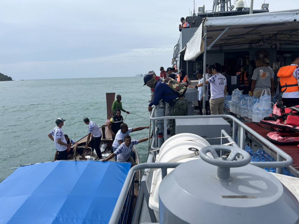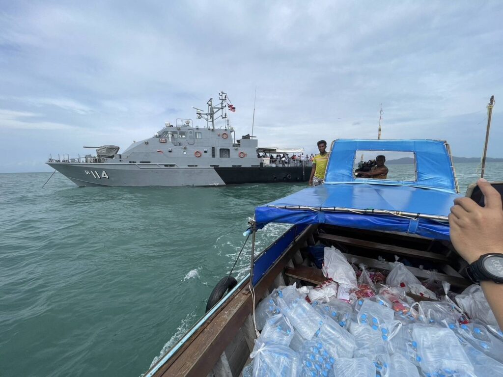 ที่สถานีเรือละงู กองทัพเรือภาคที่ 3 ตำบลแหลมสน อำเภอละงู จังหวัดสตูล ขณะนี้ทาง ร.อ.ทศพล พงศ์ไพศาลศรี ผู้บังคคับการเรือ ต114 พร้อมกำลังพลทหาร พร้อมด้วยนาวาเอกแสนย์ไท บัวเนียม รองผู้อำนวยการศูนย์อำนวยการรักษาผลประโยชน์ของชาติทางทะเลจังหวัดสตูล พสบ.สตูล และเจ้าหน้าที่ทางอบต.ปากน้ำ ลงเรือพร้อมถุงยังชีพจากอบต.ปากน้ำ ถุงยังชีพจากสำนักงานกาชาดจังหวัดสตูล และน้ำดื่มทั้งสิ้นเกือบ 1,000 ชุด ลงเรือรบหลวงทันที และมุ่งหน้าฝ่าคลื่นลมทางทะเลสูงถึง 3 เมตร