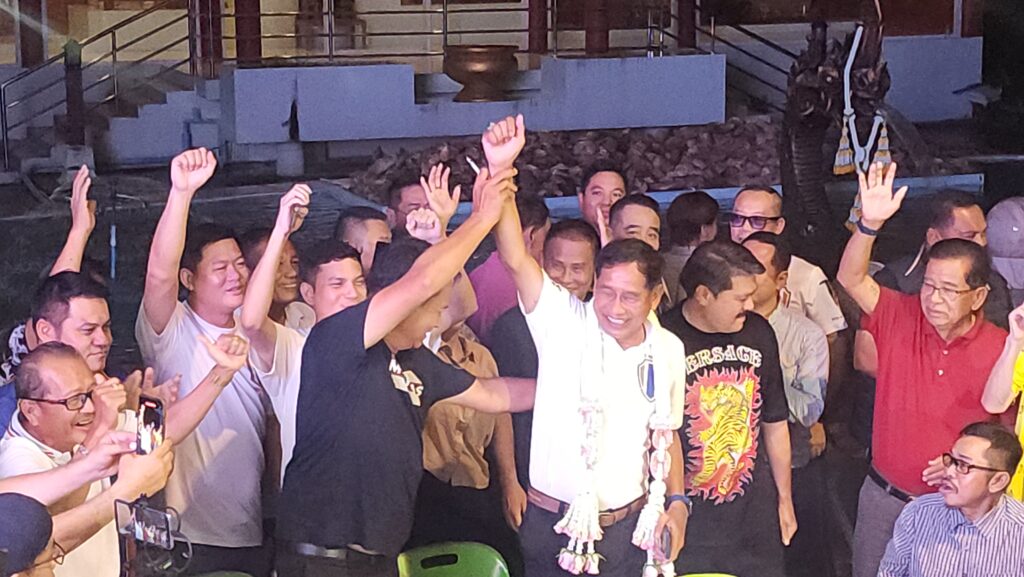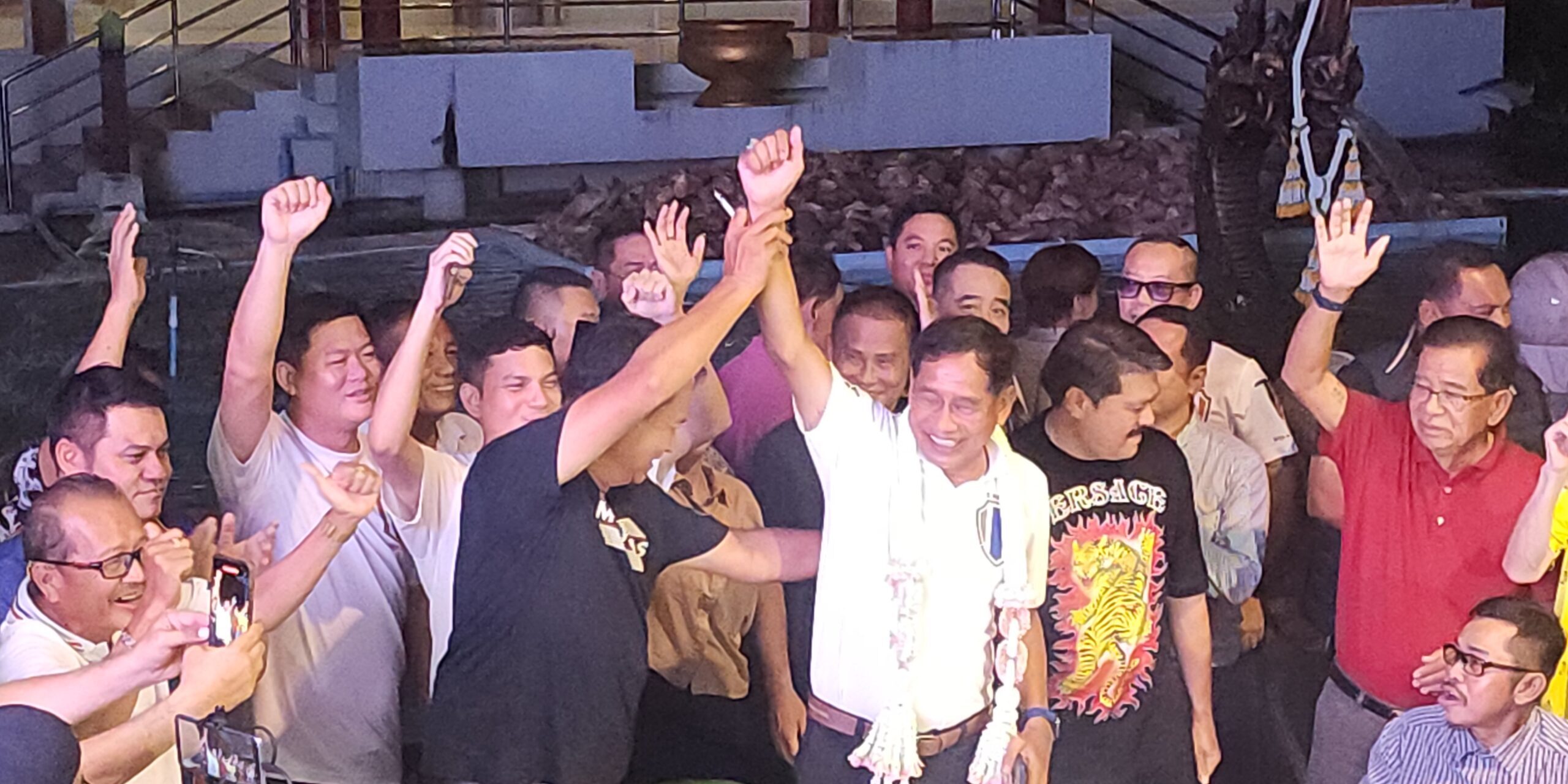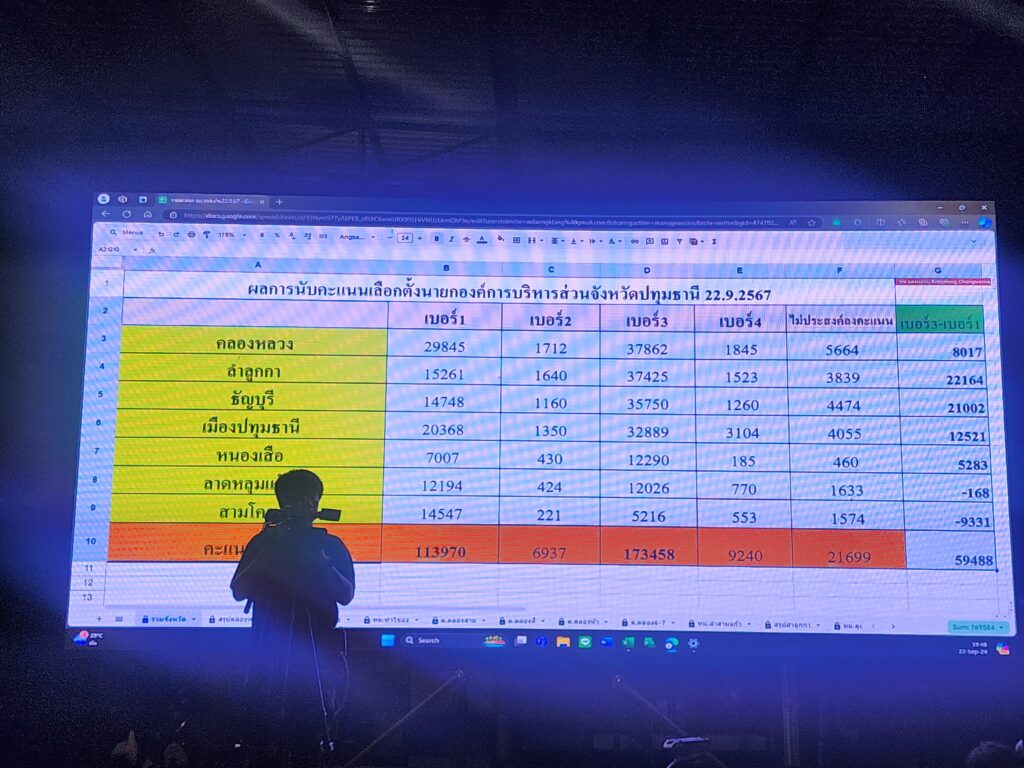 เมื่อเวลา 19.30 น. วันที่ 22 กันยายน 2567 ที่ศูนย์อำนวยการเลือกตั้งนายก อบจ.ปทุมธานี ของพล.ต.ท.คำรณวิทย์ ธูปกระจ่าง (มูลนิธิมงคล-จงกล ธูปกระจ่าง) ตำบลเชียงรากใหญ่ อำเภอสามโคก จังหวัดปทุมธานี พล.ต.ท.คำรณวิทย์ ธูปกระจ่าง ผู้สมัครรับเลือกตั้งนายก อบจ.ปทุมธานี นายวัน อยู่บำรุง และทีมงาน ตั้งโต๊ะขอบคุณพี่น้องประชาชน ที่คะแนนห่างจากคู่แข่งเกือบ 60,000 คะแนน