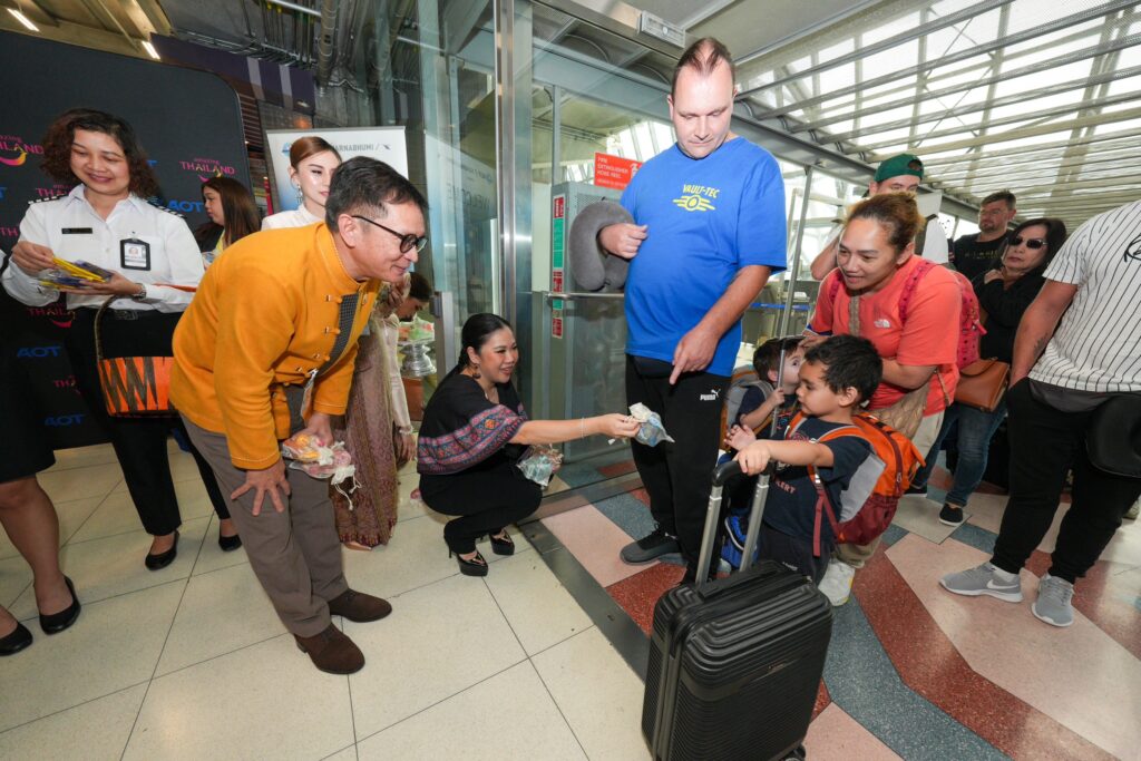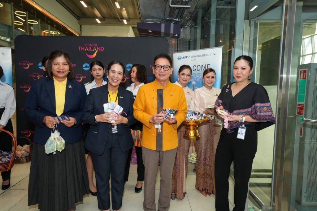 ทั้งนี้ ผู้บริหาร ททท. รวมถึงหน่วยงานภาครัฐและเอกชนร่วมต้อนรับและส่งมอบบรรยากาศแห่งความประทับใจทันทีที่เครื่องบินเดินทางถึงประเทศไทยด้วยการมอบของที่ระลึกแก่คณะนักท่องเที่ยว เพื่อแสดงมิตรไมตรีและสร้างความเชื่อมั่นแบรนด์ Amazing Thailand ตอกย้ำให้ประเทศไทยยังคงเป็นจุดหมายปลายทางยอดนิยมในใจของนักท่องเที่ยว