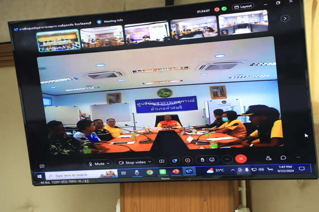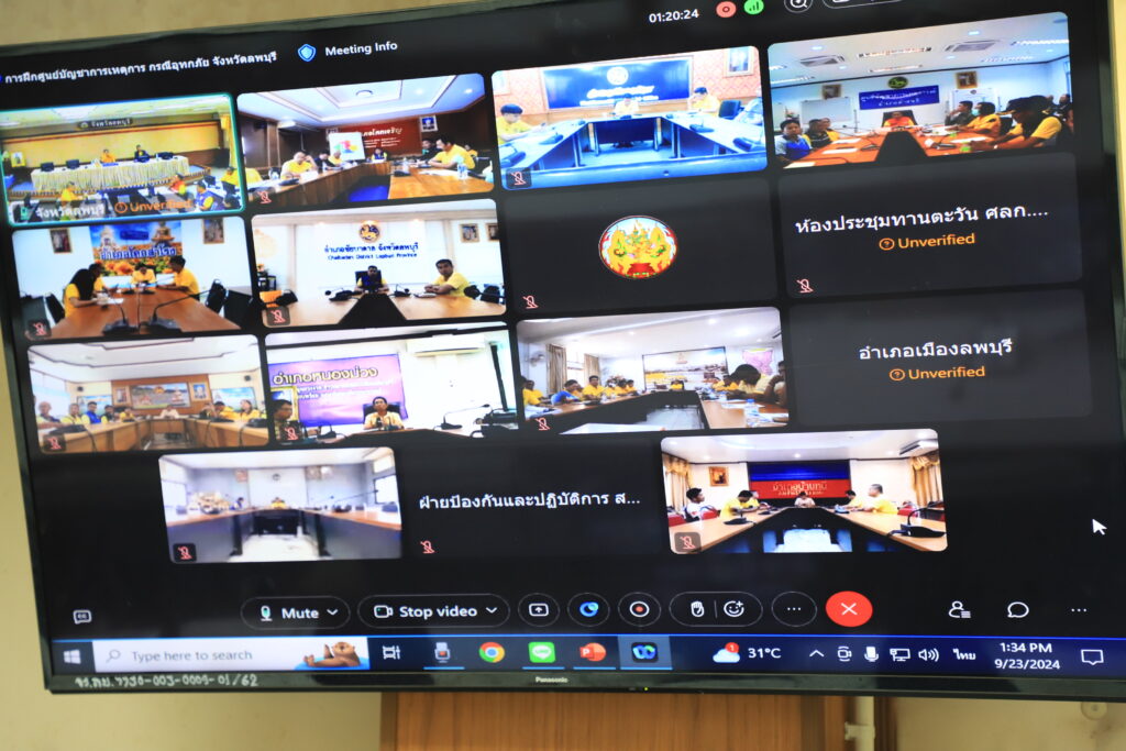 ที่ ห้องประชุมทานตะวัน ชั้น 5 ศาลากลางจังหวัดลพบุรี นายอำพล อังคภากรณ์กุล ผู้ว่าราชการจังหวัดลพบุรี เป็นประธานการประชุมการเตรียมความพร้อมรับมือ ในการป้องกันและแก้ไขปัญหาอุทกภัย วาตภัย และดินโคลนถล่มสถานณ์น้ำในพื้นที่จังหวัดลพบุรี ทั้ง 11 อำเภอ โดยมี ว่าที่ร้อยตรี ทรงพล แป้นแก้ว รองผู้ว่าราชการจังหวัดลพบุรี พร้อมด้วย หัวหน้าส่วนราชการ หน่วยงานที่เกี่ยวข้อง และนายอำเภอทั้ง 11 อำเภอ ร่วมประชุมผ่านระบบสื่ออิเล็กทรอนิกส์ (Webex)