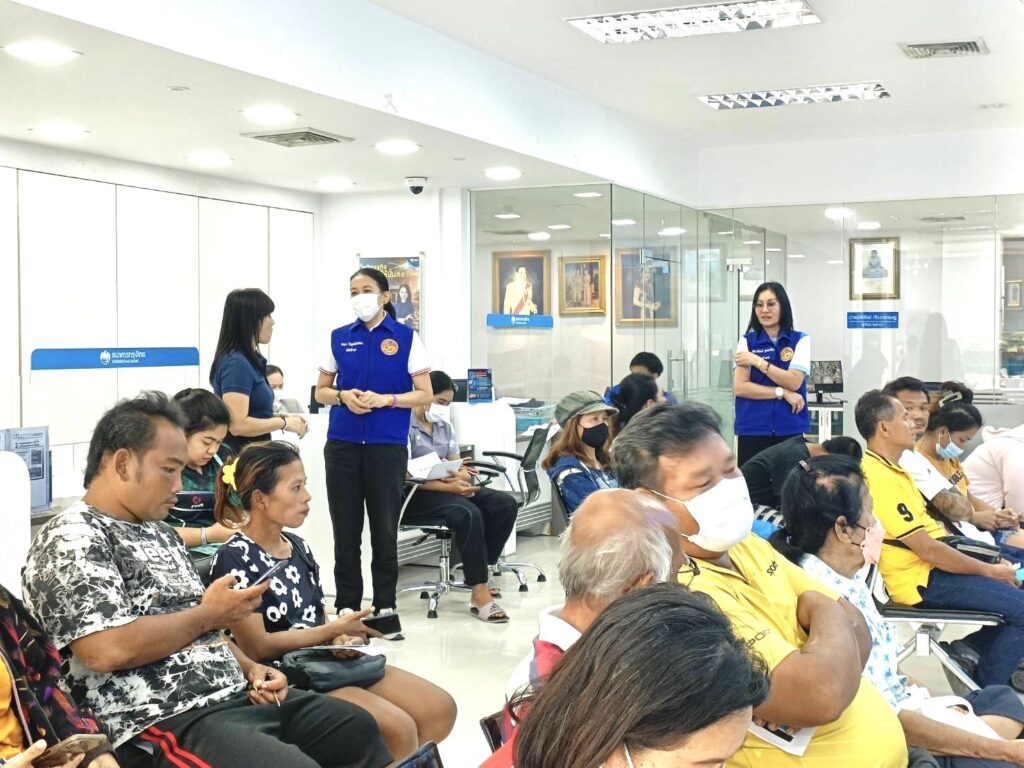 ได้มีประชาชนเดินทางมาตั้งแต่เช้าและช่วงบ่ายก็มีประชาชนเดินทางมาติดต่อทางธนาคารเป็นจำนวนมาก