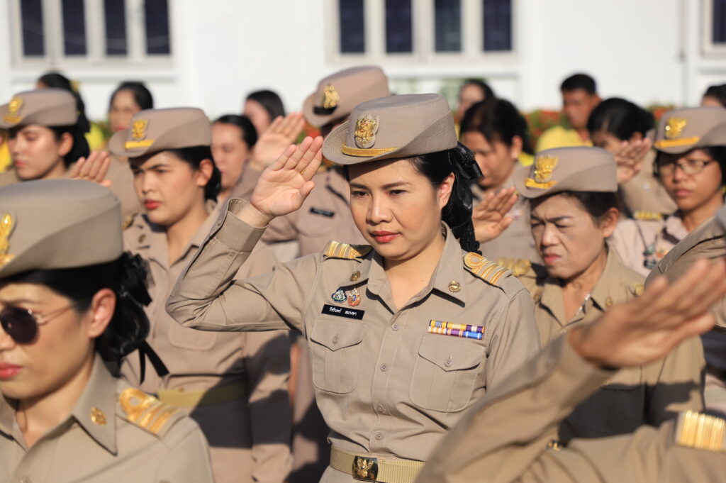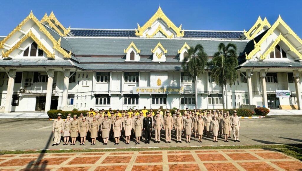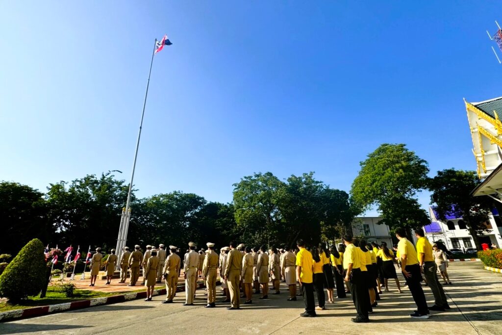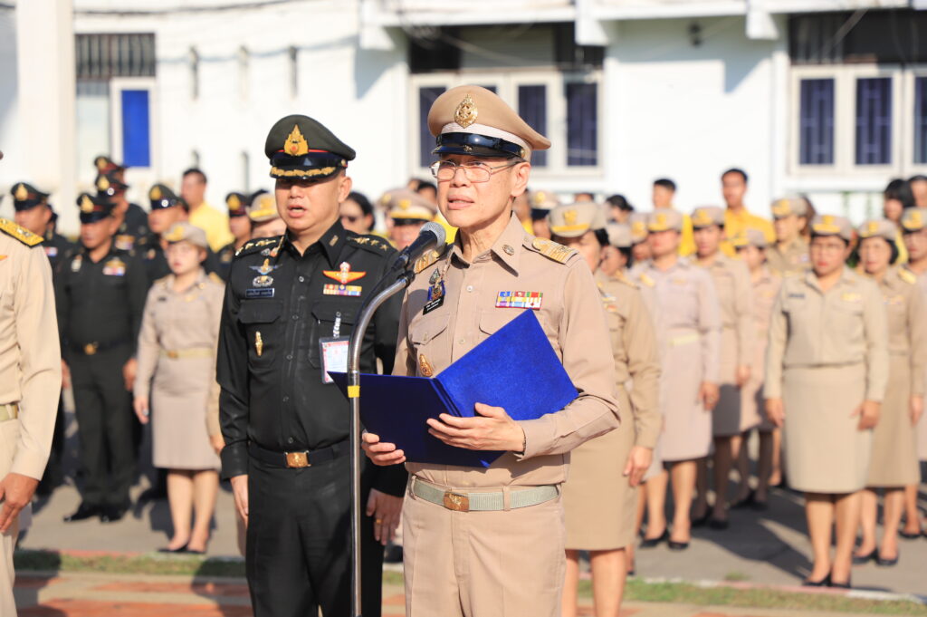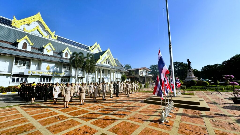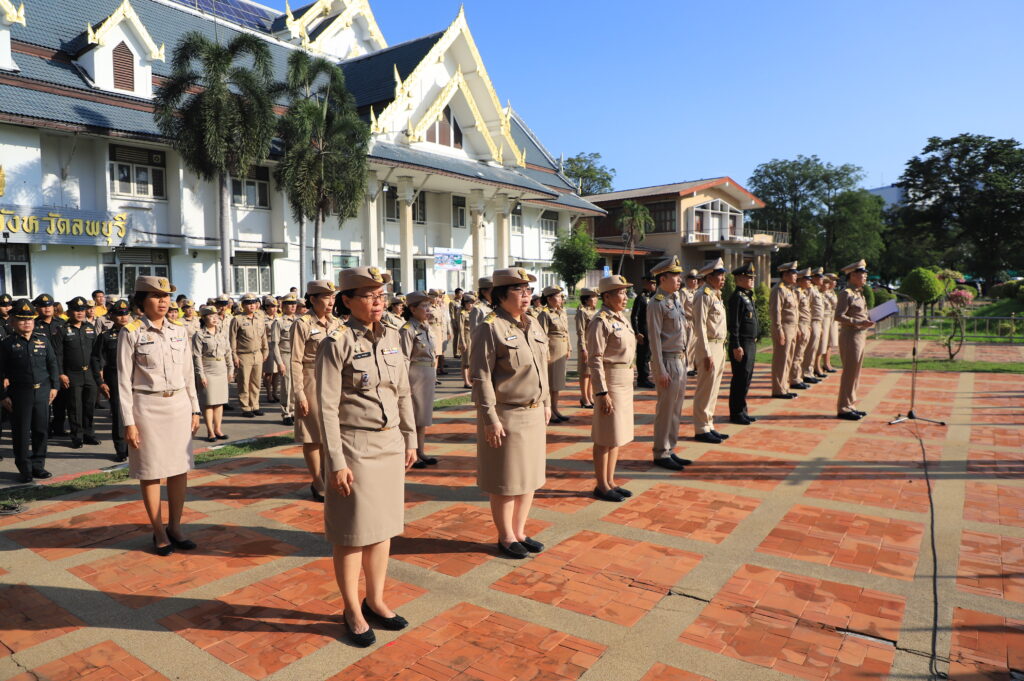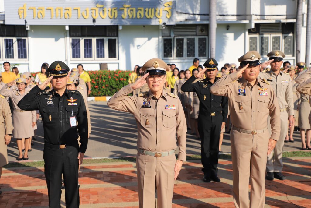 วันที่ 27 กันยายน 2567 เวลา 08.00 น. นายอำพล อังคภากรณ์กุล ผู้ว่าราชการจังหวัดลพบุรี นำหัวหน้าส่วนราชการเคารพธงชาติและร้องเพลงชาติไทย พร้อมนำกล่าวอุดมการณ์รักชาติ ปฏิญาณตนเป็นข้าราชการที่ดี เนื่องในวันพระราชทานธงชาติไทย ประจำปี 2567 พร้อมกันทั่วประเทศ โดยมี นายปรัชญา เปปะตัง ว่าที่ร้อยตรี ทรงพล แป้นแก้ว รองผู้ว่าราชการจังหวัดลพบุรี พันเอก เฉลิมเกียรติ ลาดมะโรง รองผู้อำนวยการกองอำนวยการรักษาความมั่นคงภายในจังหวัดลพบุรี(ฝ่ายทหาร) พร้อมด้วยหัวหน้าส่วนราชการประจำจังหวัดลพบุรี ร่วมเคารพธงชาติและร้องเพลงชาติไทย พร้อมกับอำเภอต่าง ๆ ในพื้นที่โดยพร้อมเพรียงกันทั่วประเทศ