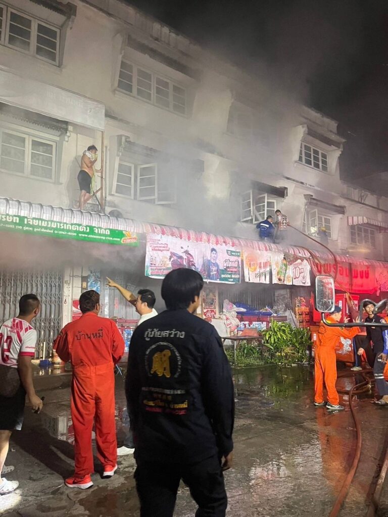 ชั้นล่างเป็นร้านค้าขายของโชห่วย 3 คูหา มีของขายทุกชนิดวางแน่นร้าน ชั้น 2 เป็น ห้องนอน อาศัยอยู่บ้าน 4 คน ซึ่งมีตนเอง น้องชาย และหลานชาย 2 คน ตอนเกิดเหตุ ตนและน้องชายได้เข้านอน แล้ว มีหลานชายคนโตยังทำงานอยู่ สักพักหลานชายได้กลิ่นเหม็นไหม้จึงได้เรียกพ่อให้ตื่น และมาเรียกตนเอง ออกมาดูพบว่าชั้นล่างไฟไหม้ และมีควัน จำนวนมาก ไฟฟ้าในบ้านก็ดับ ออกทางด้านล่างไม่ได้ ตนจึงพากันปีนหน้าต่างหน้าบ้านชั้น 2 ออกมาได้ 3 คน ส่วนหลายชายคนเล็ก อยู่ในห้องด้านหลัง ยังไม่ได้ออกมา ตนเป็นห่วงมาก จนมีเจ้าหน้าที่ดับเพลิงเข้าไปช่วยเหลือหลานชายออกมาได้ปลอดภัย สาเหตุนั้นคาดว่าน่าจะเกิดจากไฟฟ้ารัดวงจร