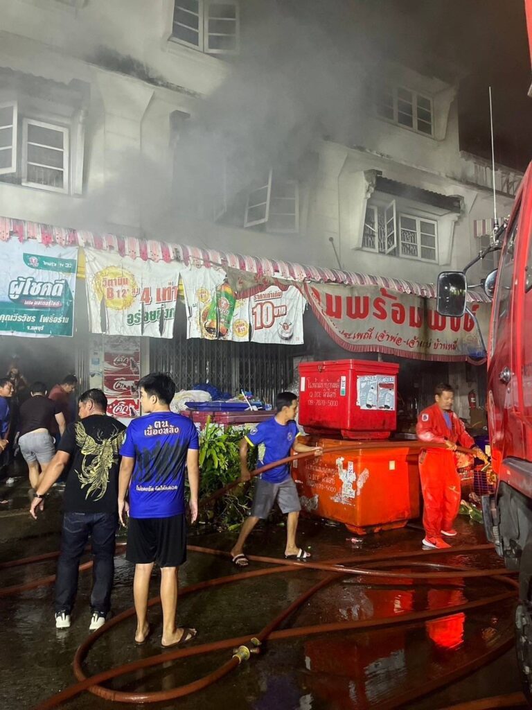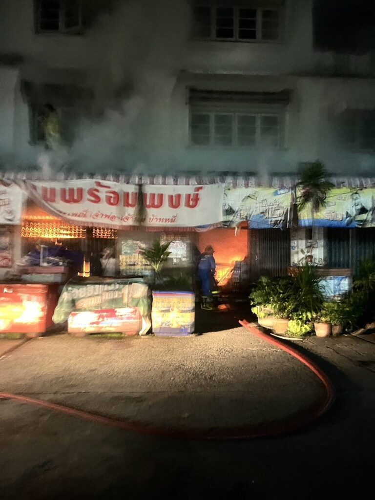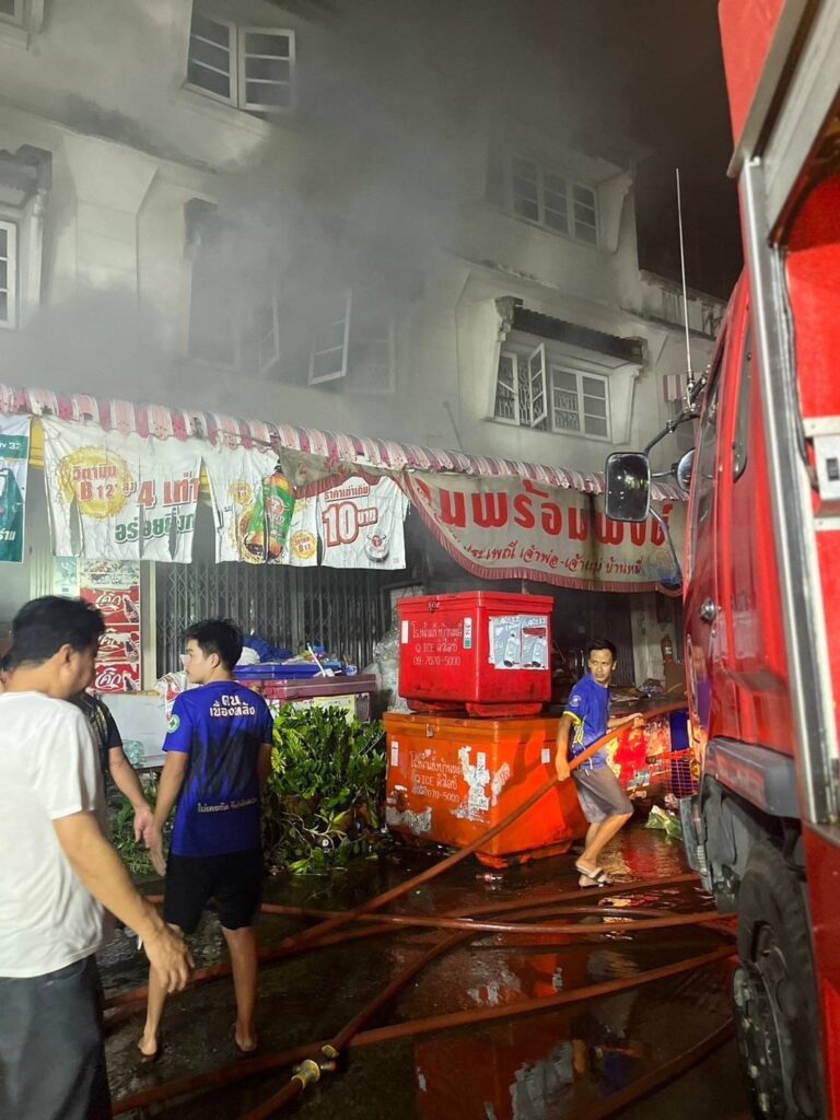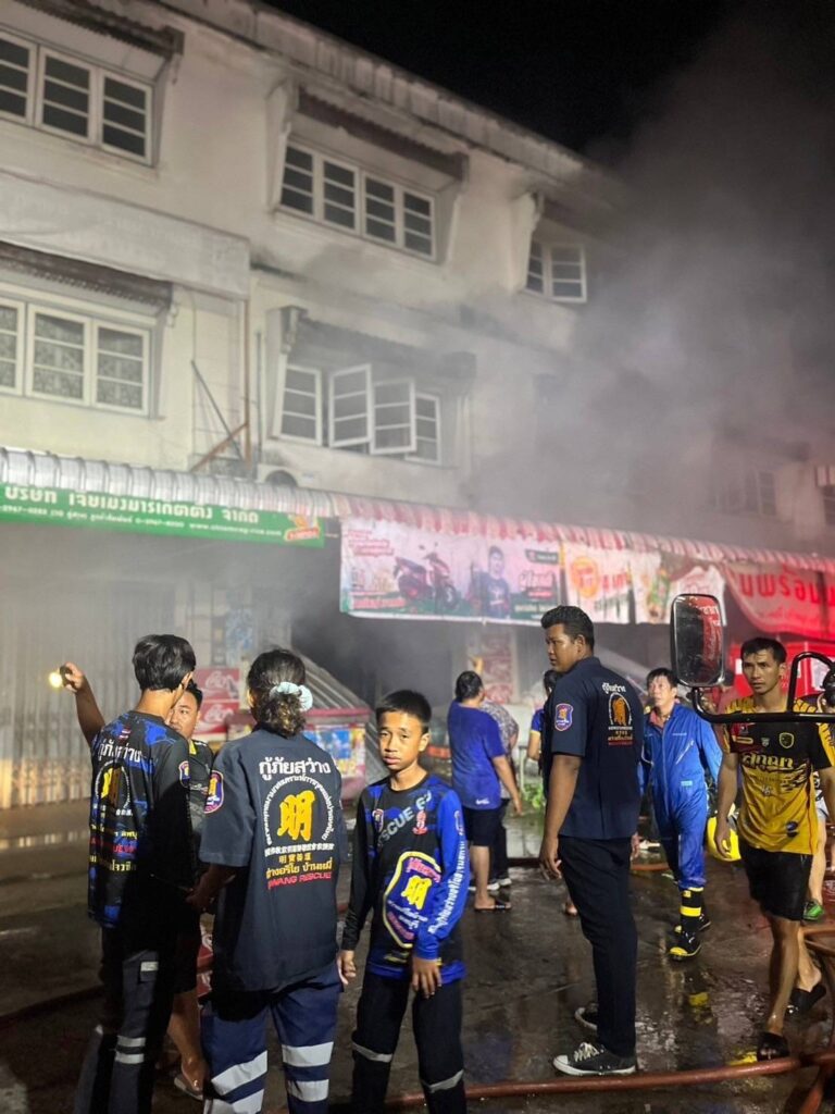 ที่เกิดเหตุ เป็นอาคารพานิช 3 ชั้น เป็นร้านขายของโชห่วย 3 คูหา มองเห็นแสงไฟกำลังลุกไหม้ ชั้นล่างรุนแรง และมีกลุ่มควันหนาแน่น จำนวนมาก พุงออกชั้น 2 และ ชั้น 3 ประตูบ้านยังปิดอยู่ จึงได้ใช้น้ำฉีดเพื่อสกัดเพลิง และงัดประตูเปิดออก