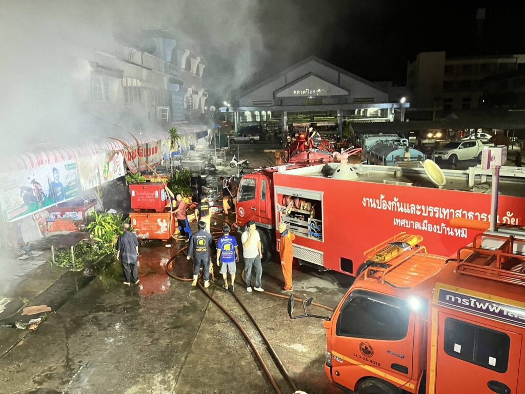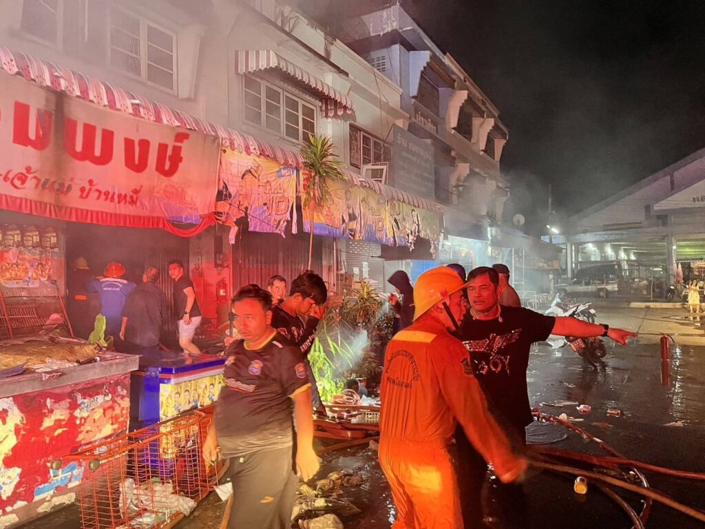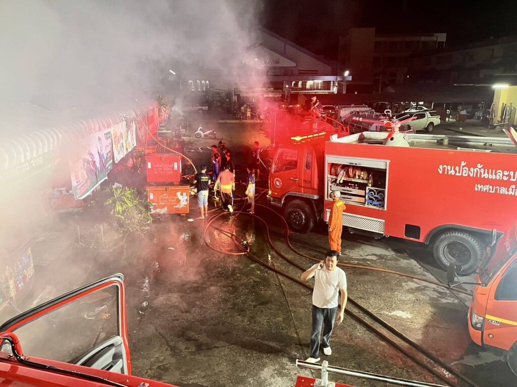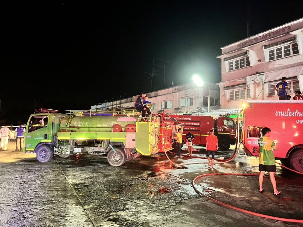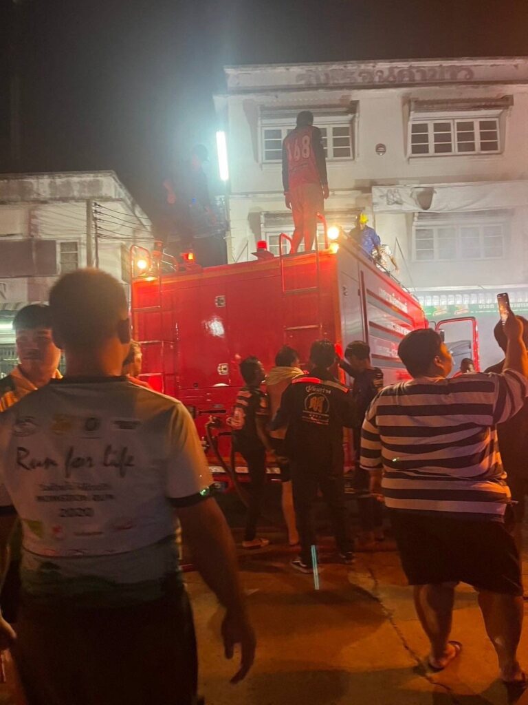 ที่เกิดเหตุ เป็นอาคารพานิช 3 ชั้น เป็นร้านขายของโชห่วย 3 คูหา มองเห็นแสงไฟกำลังลุกไหม้ ชั้นล่างรุนแรง และมีกลุ่มควันหนาแน่น จำนวนมาก พุงออกชั้น 2 และ ชั้น 3 ประตูบ้านยังปิดอยู่ จึงได้ใช้น้ำฉีดเพื่อสกัดเพลิง และงัดประตูเปิดออก