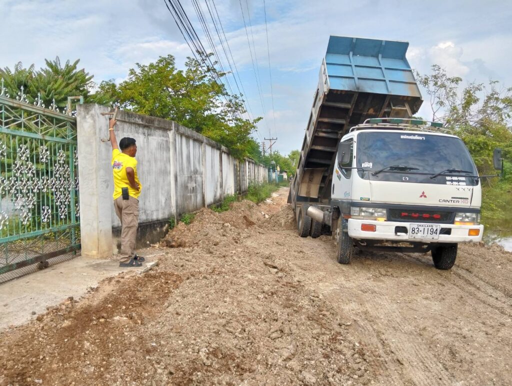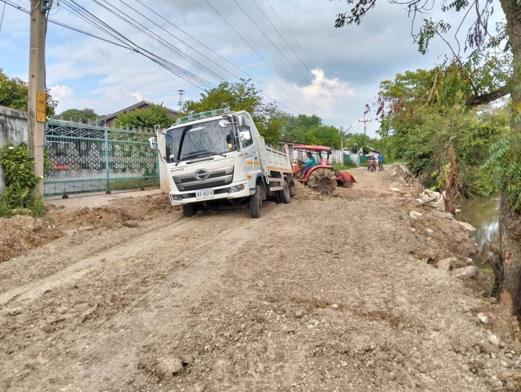 ได้พาทีมงานกองช่างองค์การบริหารส่วนตำบลหนองทรายขาว พร้อมเครื่องจักรลงพื้นที่หมู่ที่ 7 บ้านคลอง ในการลูกรังถนนทางฝั่งขาเข้าเส้นบ้านคลองที่มีการทรุดของถนนลงเส้นคลองลำโพนทอง ทำการซ่อมแซมให้ใช้ถนนเส้นนี้ได้ และเพื่อความปลอดภัยของผู้ใช้รถใช้ถนนเส้นนี้