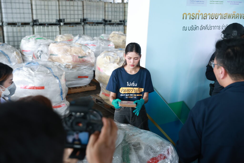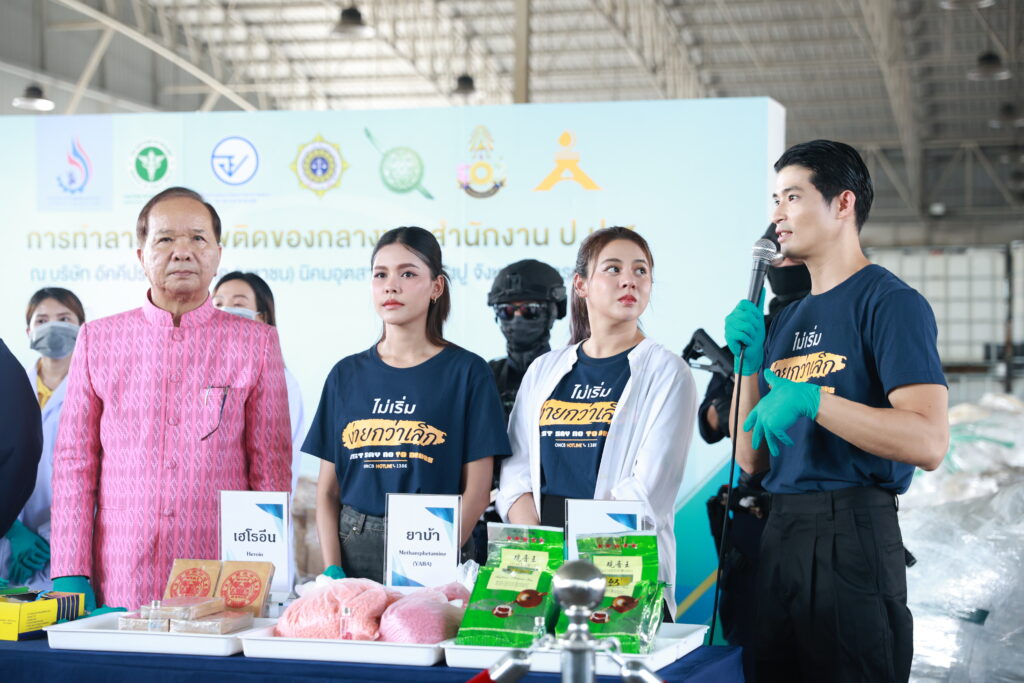 พล.ต.ท.ภาณุรัตน์ หลักบุญ เลขาธิการ ป.ป.ส. กล่าวว่า ยาเสพติดที่เผาทำลายวันนี้ มีน้ำหนักยาเสพติดของกลางรวมกว่า 25.51 ตัน จาก 126 คดี ได้แก่ ยาบ้า 13,313 กิโลกรัม (146 ล้านเม็ด) ไอซ์ 6,544 กิโลกรัม คีตามีน 634 กิโลกรัม เฮโรอีน 537 กิโลกรัม ยาอี 1 กิโลกรัม สารผสม 51 กิโลกรัม และยาเสพติดอื่นๆ โดยสำนักงาน ป.ป.ส. จัดการเผาทำลายยาเสพติดของกลางขึ้น เพื่อคลายข้อสงสัยของประชาชนเกี่ยวกับกระบวนการเผาทำลายยาเสพติดของกลาง ซึ่งในครั้งนี้ได้เชิญตัวแทนประชาชนจากทั้งภาครัฐและหน่วยงานที่เกี่ยวข้อง นักร้องนักแสดงที่มีอิทธิพลบนสื่อ และสื่อมวลชน มาเป็นสักขีพยานตรวจสอบของกลางที่จะเผาทำลาย เพื่อเป็นตัวแทนของประชาชนในการสร้างความมั่นใจและช่วยสร้างการรับรู้ต่อสังคมว่ายาเสพติดของกลางนั้นได้ถูกทำลายตามกระบวนการอย่างโปร่งใส พร้อมให้ความเชื่อมั่นกับประชาชนที่อยู่บริเวณโดยรอบว่ากระบวนการเผาทำลายยาเสพติดของกลางในครั้งนี้ มีระบบควบคุมมลพิษทางอากาศที่ไม่ก่อให้เกิดผลกระทบต่อสภาพแวดล้อม ดำเนินการเผาด้วยเตาเผาขยะอันตรายอุณหภูมิสูงกว่า 1,200 องศาเซลเซียส ที่ใช้เชื้อเพลิงก๊าซธรรมชาติ ไม่ก่อให้เกิดผลกระทบต่อสิ่งแวดล้อม