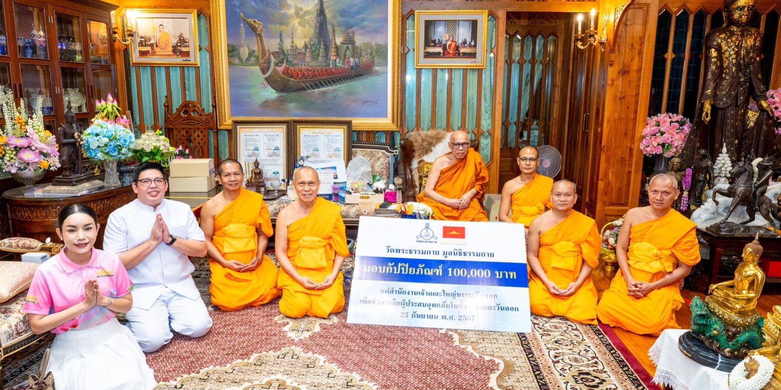 วันที่ 26 กันยายน 2567 พระครูสมุห์สนิทวงศ์ วุฑฺฒิวํโส, ดร. ผู้อำนวยการสำนักสื่อสาร วัดพระธรรมกาย จังหวัดปทุมธานี ได้เปิดเผยว่า วัดพระธรรมกาย มูลนิธิธรรมกาย ร่วมสมทบ 100,000 บาท สนับสนุนเจ้าคณะใหญ่หนตะวันออกช่วยผู้ประสบอุทกภัย เมื่อวันพุธที่ 25 กันยายน 2567 ที่ผ่านมา พร้อมทั้งส่งกำลังใจและความห่วงใยไปยังพี่น้องผู้ประสบอุทกภัย