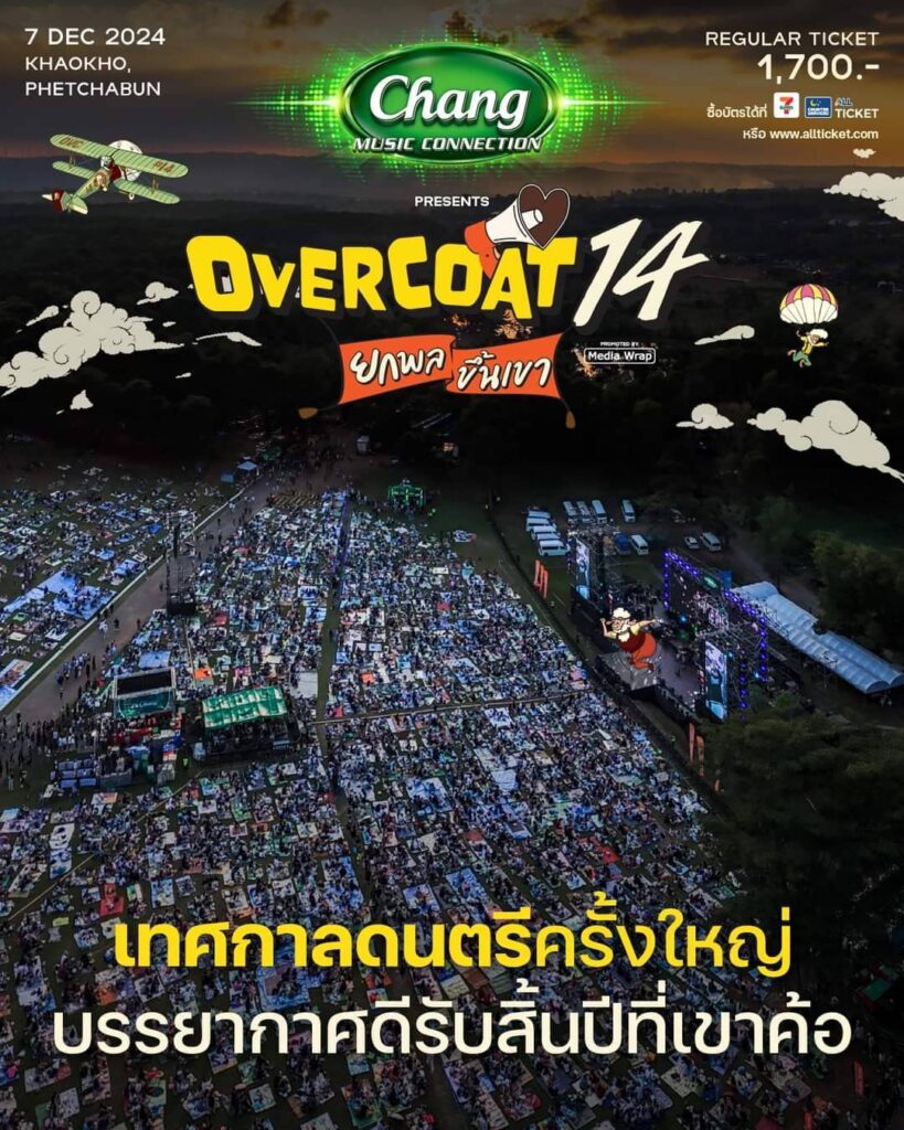 อีกไม่นาน เกินรอ เตรียมพบกับงานเทศกาลดนตรีกลางขุนเขาที่ทุกคนรอคอย! Chang Music Connection presents OVERCOAT MUSIC FESTIVAL 2024 ครั้งที่ 14 ที่จะจัดขึ้นในวันเสาร์ที่ 7 ธันวาคม 2567 ณ Jollyland Starlight Amphitheater อำเภอเขาค้อ จังหวัดเพชรบูรณ์ จากผู้จัด “มีเดีย แรพ (Media Wrap)” ที่พร้อมส่งมอบประสบการณ์ความสนุกผ่านเสียงเพลงในบรรยากาศลมหนาวของเขาค้อ ทั้งนี้ทางมีเดียแรพ ได้เตรียมศิลปินชื่อดังที่จะยกทัพมาสร้างความสนุกในคอนเสริต์OVERCOAT MUSIC FESTIVAL 2024 ครั้งที่ 14 กว่า 15 วง ไม่ว่าจะเป็น MUSKETEERS,PURPEECH, YOURMOOD,MIRRR, PIXXIE,4EVE,SLOT MACHINE,JOEY BOY,ONLY MONDAY,COCKTAIL,PAPER PLANES,PARADOX,ASIA7,TWO POPETORN และ MILLI ที่จะทำให้ค่ำคืนเต็มไปด้วยเสียงเพลงครบทุกสไตล์ ยาวต่อเนื่องกว่า 13 ชั่วโมง