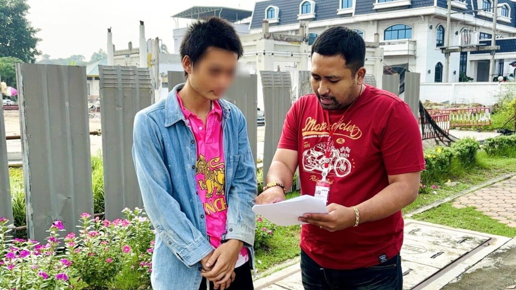 จากนั้นได้คุยผ่านทางแอบพลิเคชั่น Line โดยชื่อในแอบพลิเคชั่นของผู้แจ้งชื่อ “BKkz.” คุยแชทกับผู้ต้องหาซึ่งใช้ชื่อ