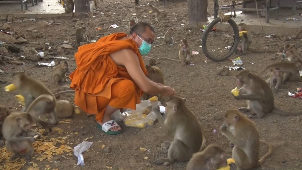 ทั้งนี้จึงขอเชิญชวนญาติ พี่น้องที่มีจิตกุศล เอื้ออาทร สิ่งที่กินเหลือแล้ว หรือเหลือจากการขาย หรือจะเป็นอาหารสัตว์ ประเภทอาหารสุนัข ซึ่งเป็นอาหารแห้งสามารถเก็บไว้ได้นาน เอามาแบ่งปันให้น้องลิงได้มีอาหารการกินที่สมบูรณ์นั้นเอง