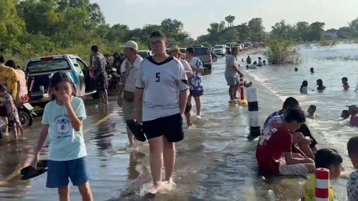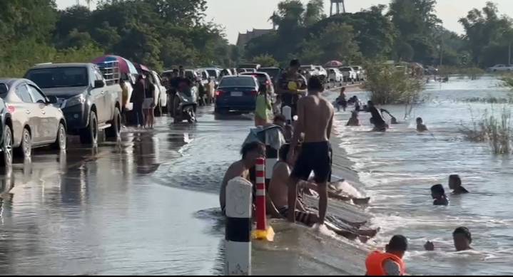 ซึ่งน้ำที่ไหลข้ามถนนสายดังกล่าวคล้ายกับน้ำตก ทำให้ชาวบ้านในหมู่บ้านหลุมข้าว และชาวอำเภอโคกสำโรง อำเภอบ้านหมี่ ต่างพาลูกหลาน ออกมาเล่นน้ำกันเป็นจำนวนมากกว่า100 คนอย่างสนุกสนาน บางส่วนทำอาหารมานั่งกินกันชายน้ำเพื่อรับบรรยากาศกันแบบชิวๆ ทำให้ พ่อค้า แม่ค้า ได้อนิสงค์ นำสินค้ามาวางขายกัน ทั้งน้ำดื่ม ลูกชิ้นทอด ไก่ย่าง และอาหารอื่นๆ มาจำหน่ายสร้างรายได้งามในช่วง1-2วันที่ผ่านมา ที่น้ำไหลข้ามถนนในครั้งนี้ จนกลายเป็นสถานที่ท่องเที่ยวคลายร้อนโดยไม่ต้องเดินทางไกลไปเล่นน้ำทะเล หรือน้ำตกเลย กลายเป็นวิกฤติในโอกาสของชาวบ้านที่นี้ แถมสร้างรายได้ให้กับพ่อค้ามาค้าอีกด้วย
