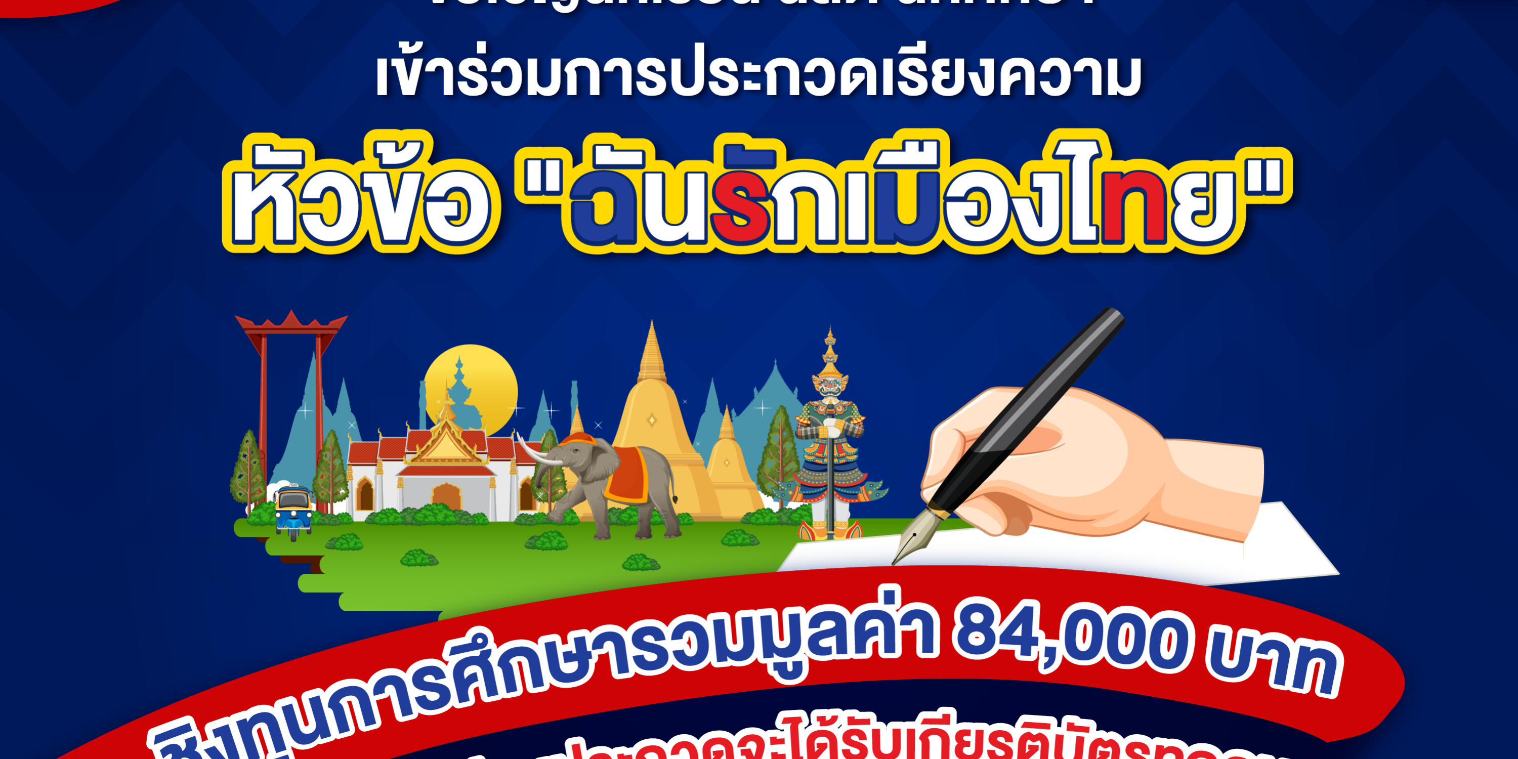 คณะนิเทศศาสตร์ มหาวิทยาลัยกรุงเทพธนบุรี ร่วมกับกองทัพเรือและมูลนิธิทรัพย์ปัญญา ขอเชิญ นักเรียน นิสิต นักศึกษาเข้าร่วมการประกวดเรียงความในหัวข้อ “ฉันรักเมืองไทย” โดยมีเงินรางวัลทุนการศึกษารวมมูลค่ากว่า ๘๔,๐๐๐ บาท พร้อมเกียรติบัตรสำหรับผู้เข้าร่วมทุกคน