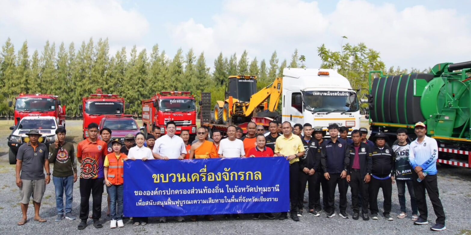 เนื่องจากสถานการณ์อุทกภัยในจังหวัดเชียงราย เข้าสู่ในระยะของการฟื้นฟูแล้ว ขณะนี้หลายหน่วยงานได้เร่งดำเนินการเพื่อคืนพื้นที่ให้แก่พี่น้องประชาชนได้กลับมาใช้ชีวิตตามปกติโดยเร็ว โดยในส่วนของ จังหวัดปทุมธานี ได้ศูนย์รับบริจาคสิ่งของเพื่อช่วยเหลือผู้ประสบภัยภาคเหนือ และส่งถุงยังชีพบรรเทาภัยให้ความช่วยเหลือประชาชนในภาคเหนือมาอย่างต่อเนื่อง ขณะนี้จังหวัดเชียงราย เร่งเข้าฟื้นฟูทำความสะอาดล้างดินโคลนตามถนน อาคารบ้านเรือนประชาชนและสิ่งสาธารณประโยชน์ จึงมีความจำเป็นต้องเครื่องจักรกลขนาดใหญ่ ทั้งรถล้อยางยกสูง รถขุดตักไฮดรอลิค รถบรรทุกเทท้าย กวาด เกลี่ย ปรับ ตักดินโคลนที่ทับถมถนน อาคารสถานที่ สิ่งสาธารณประโยชน์ในเขตพื้นที่ประสบภัย รวมถึงทำการขุดตักขนย้ายดินโคลนและขยะบนถนนเพื่อให้ประชาชนสามารถสัญจรได้ตามปกติโดยเร็ว.