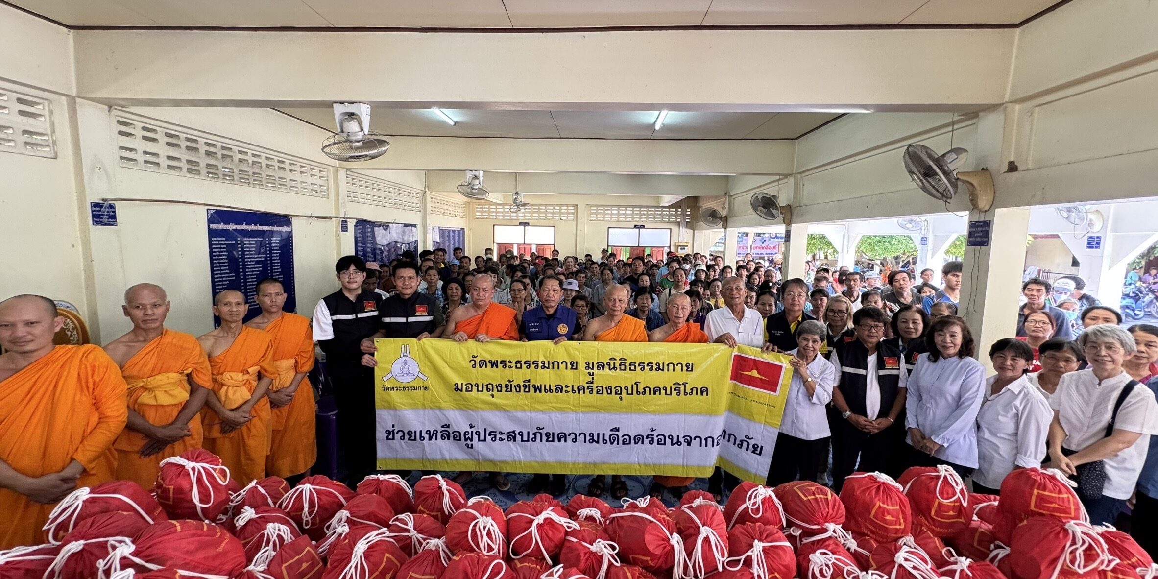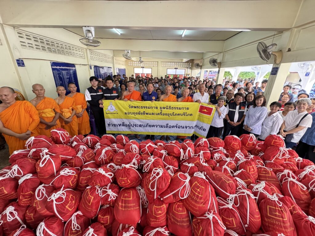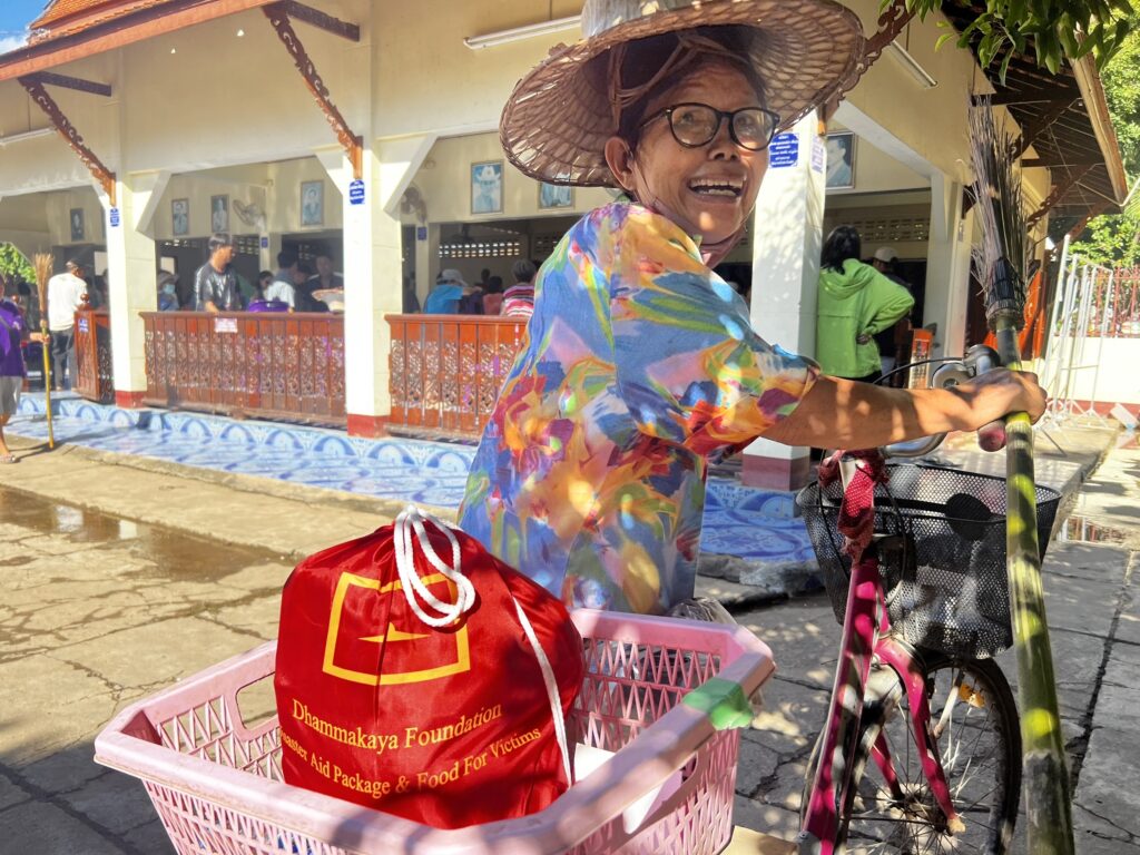 ด้านพระครูสมุห์สนิทวงศ์ วุฑฺฒิวํโส กล่าวเพิ่มว่า ระหว่างวันที่ 24 สิงหาคม – 28 กันยายน พ.ศ. 2567 วัดพระธรรมกาย มูลนิธิธรรมกาย มอบถุงยังชีพ เพื่อช่วยเหลือผู้ประสบภัยไปแล้ว 8 จังหวัด ได้แก่ เชียงราย เชียงใหม่ น่าน พระนครศรีอยุธยา แพร่ เลย สุโขทัย หนองคาย ลำปาง เป็นจำนวน 8,000 ชุด และขอเชิญชวนสาธุชนและกัลยาณมิตร ร่วมนำวัตถุทานมาร่วมเป็นส่วนหนึ่งของการให้กำลังใจช่วยผู้ประสบภัยน้ำท่วม ด้วยสิ่งของดังนี้ นมกล่อง, ปลากระป๋อง, อาหารสำเร็จรูป (อาทิเช่น แกงเขียวหวานซอง ตราโรซ่า หรืออื่นๆ), ผักกาดดองกระป๋อง, บะหมี่กึ่งสำเร็จรูปแบบ คัพ แบบ ซอง, วุ้นเส้น, เส้นหมี่ เป็นต้น ทั้งนี้ฝ่ายสาธารณสงเคราะห์ของวัดพระธรรมกาย ได้ประสานงานกับประธานส่งเสริมศีลธรรมจังหวัดที่ประสบอุทกภัยเพื่อนำส่งถุงยังชีพผ่านเครือข่ายกัลยาณมิตรไปบรรเทาความเดือดร้อนให้กับพี่น้องประชาชนต่อไป สามารถติดต่อร่วมบริจาคได้ที่วัดพระธรรมกาย โรงครัว 71 ปี วันจันทร์-อาทิตย์ เวลา 08.00-11.00 น. และ 13.00-16.30 น. หรือเบอร์โทรศัพท์โทร.02-831-1000