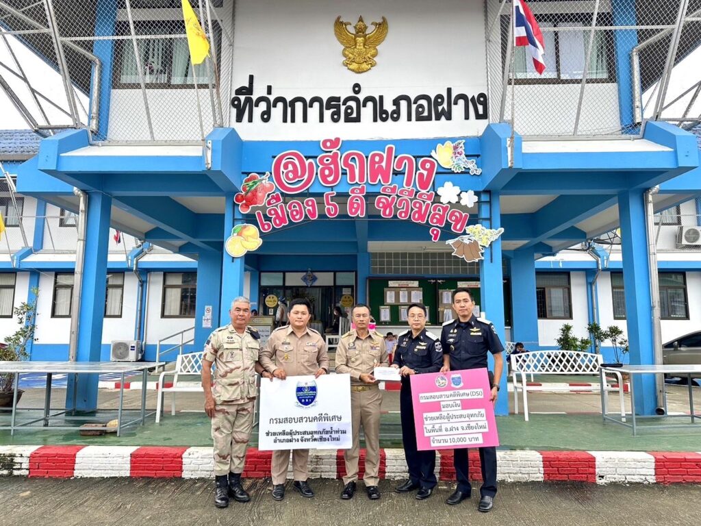 นอกจากนี้ เจ้าหน้าที่ศูนย์ปฏิบัติการคดีพิเศษ เขตพื้นที่ 5 ยังได้เป็นตัวแทนนำสิ่งของเครื่องใช้จำเป็น เช่น ยารักษาโรค และอุปกรณ์ทำความสะอาดต่างๆ ไปมอบให้กับประชาชนในพื้นที่อำเภอแม่สาย จังหวัดเชียงรายและจังหวัดเชียงใหม่ ที่ประสบอุทกภัย โดยมีตัวแทนของเครือข่าย DSI STATION จังหวัดเชียงราย เป็นผู้ประสานงานรับมอบ เพื่อส่งต่อสิ่งของไปให้ผู้ได้รับความเดือดร้อนต่อไป