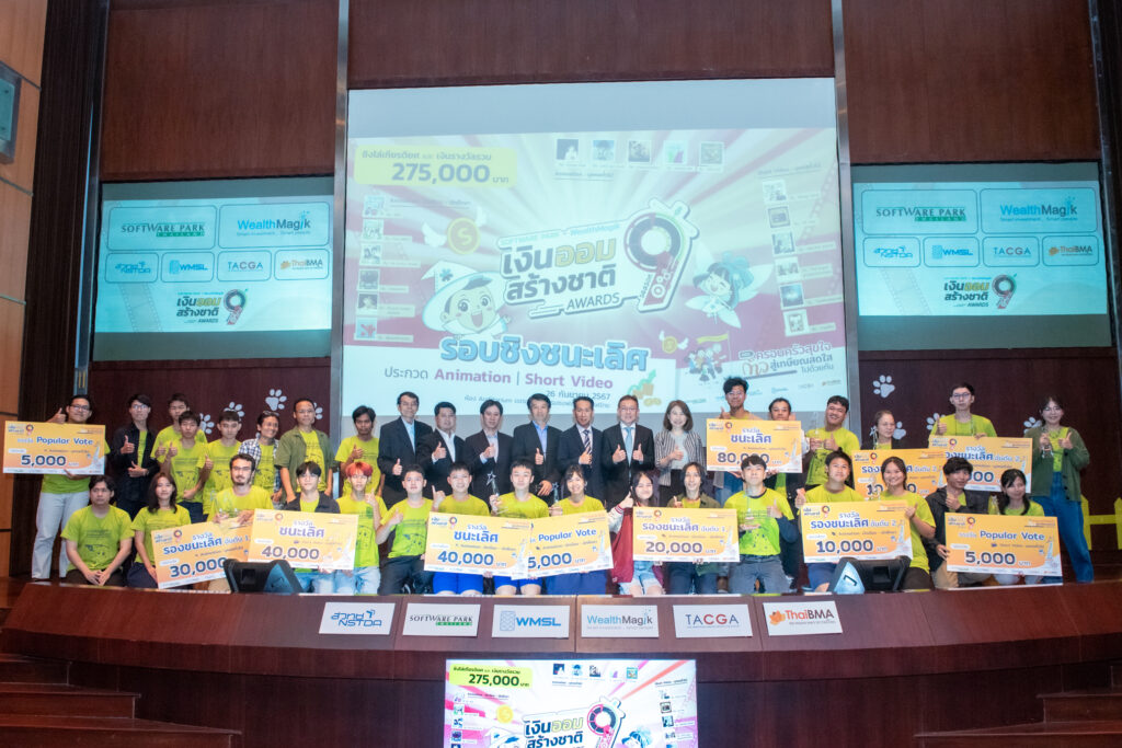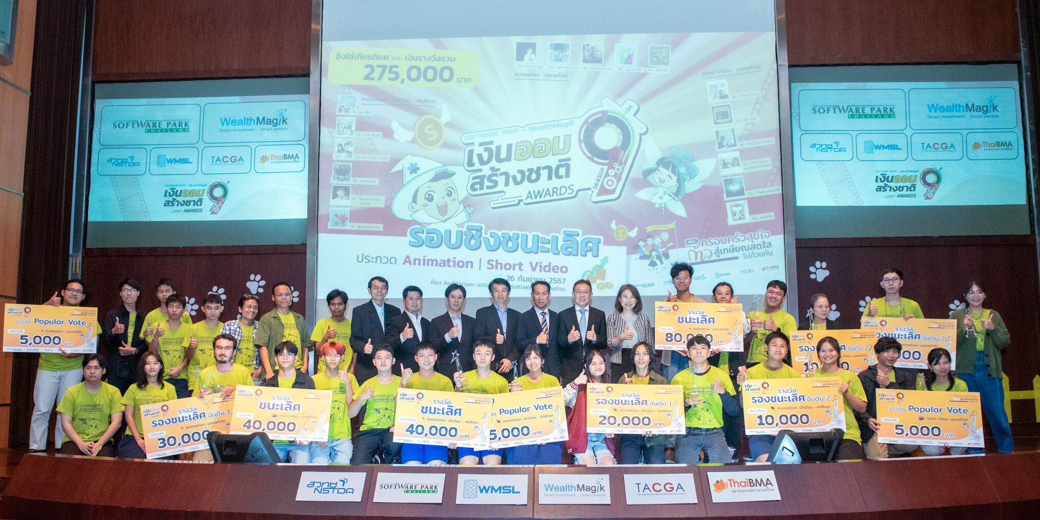เมื่อวันที่ 26 กันยายน 2567 ณ ห้อง Auditorium ชั้น 3 อาคาร Software Park ถนนแจ้งวัฒนะ ปากเกร็ด จ.นนทบุรี : ดร.ภัทราวดี พลอยกิติกูล ผู้อำนวยการเขตอุตสาหกรรมซอฟต์แวร์ประเทศไทย สำนักงานพัฒนาวิทยาศาสตร์และเทคโลยีแห่งชาติ (สวทช.) กระทรวงการอุดมศึกษา วิทยาศาสตร์ วิจัยและนวัตกรรม (อว.) พร้อมด้วย นายสมเกียรติ ชินธรรมมิตร์ ประธานเจ้าหน้าที่บริหารบริษัทเว็ลธ์ แมเนจเม้นท์ ซิสเท็ม จำกัด ร่วมมอบรางวัลในโครงการ Software Park–WealthMagik เงินออมสร้างชาติ Awards Season 9 ภายใต้หัวข้อ “ครอบครัวสุขใจ ก้าวสู่เกษียณสดใสไปด้วยกัน” โดย โครงการฯ นี้จัดขึ้นเพื่อเป็นเวทีให้กับนักเรียน นักศึกษา ตลอดจนบุคคลทั่วไปได้แสดงศักยภาพ ในการใช้เทคโนโลยี พร้อมนำความรู้ ความสามารถ ทักษะและความคิดสร้างสรรค์มาพัฒนาผลงาน เพื่อเผยแพร่ความรู้ทางด้านการเงินผ่านสื่อแอนิเมชัน และวีดิทัศน์เรื่องสั้นที่สนุกและเข้าใจง่าย สามารถเข้าถึงได้ในทุกช่วงวัย อีกทั้งยังได้เรียนรู้การนำเทคโนโลยีมาเป็นเครื่องมือช่วยบริหารเงินออมให้งอกเงยเพื่ออนาคตยามเกษียณ