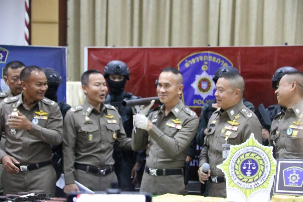 อ.ตาพระยา จ.สระแก้ว และสามารถตรวจยึดอาวุธสงครามได้เพิ่มเติมหลายรายการ ในการจับกุมครั้งนี้ เจ้าหน้าที่ตำรวจสามารถจับกุมผู้ต้องหาและตรวจยึดของกลางยาเสพติดและอาวุธสงคราม ดังนี้ ยาบ้า จำนวน 1,630 เม็ด ตรวจยึดจากนายสมพงษ์ฯ ในพื้นที่ จ.ลพบุรี,ปืนยิงจรวด อาร์พีจี 2 จำนวน 1 กระบอก ตรวจยึดจากนายสมพงษ์ ในพื้นที่ จ.สระบุรี,อาวุธปืนเล็กยาว เอ.เค.47 (AK47) จำนวน 14 กระบอก โดยตรวจยึดจากนายสมพงษ์ ในพื้นที่ จ.สระบุรี จำนวน 9 กระบอก และตรวจยึดจากนายอภิเชฐฯ ในพื้นที่ จ.สระแก้ว จำนวน 5 กระบอก,แม็กกาซีนอาวุธปืนเล็กยาว เอ.เค.47 (AK47) จำนวน 73 อัน โดยตรวจยึดจากนายสมพงษ์ ในพื้นที่ จ.สระบุรี จำนวน 67 อัน และตรวจยึดจากนายอภิเชฐฯ ในพื้นที่ จ.สระแก้ว จำนวน 6 อัน จับกุมผู้ต้องหาได้รวม 2 ราย คือ นายสมพงษ์หรือเอ็ม กล่าวหาว่ากระทำผิดฐาน มียาเสพติดให้โทษประเภท 1 (ยาบ้าหรือเมทแอมเฟตามีน) ไว้ในความครอบครองโดยผิดกฎหมาย และร่วมกันมีอาวุธปืนที่นายทะเบียนจะออกใบอนุญาตให้ไม่ได้ไว้ในครอบครองโดยผิดกฎหมาย ถูกจับกุมที่หอพักในพื้นที่ ม.5 ต.ช่องสาริกา อ.พัฒนานิคม จ.ลพบุรี ต่อเนื่องกับบ้านพัก พื้นที่ ม.6 ต.วังม่วง จ.สระบุรี เมื่อวันที่ 17 กันยายน 2567,นายอภิเชฐหรือหมู ผู้ต้องหาตามหมายจับศาลจังหวัดสระบุรี ที่ 282/2567 ลงวันที่ 21 กันยายน 2567 โดยกล่าวหาว่า “กระทำผิดฐาน ร่วมกันมีอาวุธปืนที่นายทะเบียนจะออกใบอนุญาตให้ไม่ได้ไว้ในครอบครองโดยผิดกฎหมาย” ถูกจับกุมที่บ้านพักในพื้นที่ ม.4 ต.โคคลาน อ.ตาพระยา จ.สระแก้ว เมื่อวันที่ 24 กันยายน 2567