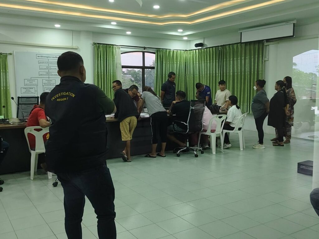 หลังการเข้าจับกุม เจ้าหน้าที่ได้ควบคุมตัวผู้ต้องหาทั้งหมด ส่งพนักงานสอบสวน สภ.นาจอมเทียน เพื่อดำเนินคดีในข้อหา “ร่วมกันลักลอบเล่นการพนันไพ่ป๊อกแปด-เก้า พนันเอาทรัพย์สินกันโดยไม่ได้รับอนุญาต” และมีผู้ต้องหาที่ 1 และผู้ต้องหาที่ 7 รับเป็นเจ้าบ้านและเจ้ามือ ในการเล่นการพนันในครั้งนี้