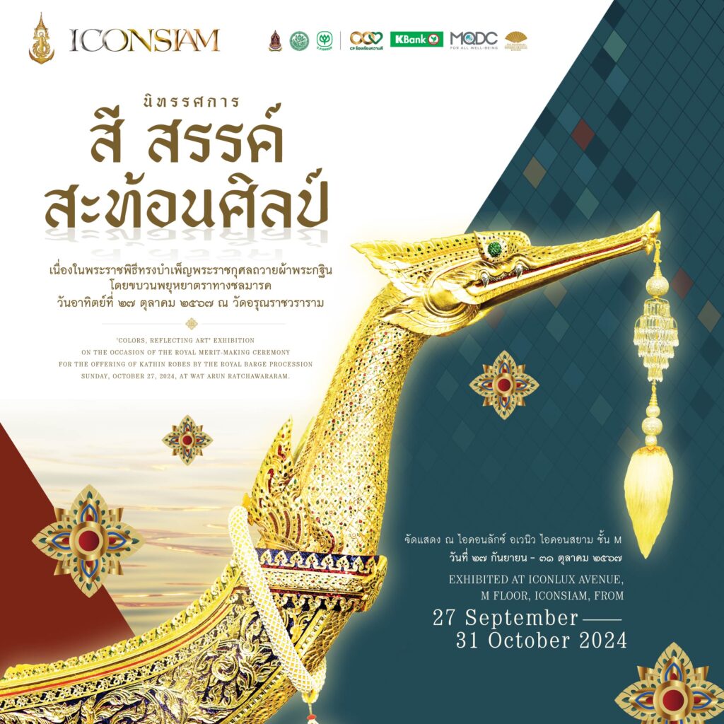 เนื่องในโอกาสมหามงคลที่พระบาทสมเด็จพระเจ้าอยู่หัว ทรงพระกรุณาโปรดเกล้าโปรดกระหม่อม กำหนดการทรงบำเพ็ญพระราชกุศลถวายผ้าพระกฐิน โดยขบวนพยุหยาตราทางชลมารค ในวันอาทิตย์ที่ 27 ตุลาคม 2567 ณ วัดอรุณราชวรารามราชวรมหาวิหาร กองทัพเรือ ได้ร่วมกับ ไอคอนสยาม, กระทรวงวัฒนธรรม, กรมศิลปากร, เครือเจริญโภคภัณฑ์, บริษัทแมกโนเลีย ควอลิตี้ ดีเวล็อปเม้นต์ คอร์ปอเรชั่น และจํากัด ธนาคารกสิกรไทย จัดงาน “นิทรรศการ สี สรรค์ สะท้อนศิลป์ เนื่องในพระราชพิธีทรงบำเพ็ญพระราชกุศลถวายผ้าพระกฐิน โดยขบวนพยุหยาตราทางชลมารค” นำเสนองานศิลป์อันทรงคุณค่าและเผยแพร่ประเพณีอันงดงามของประเทศไทยสู่สายตาชาวโลก สะท้อนความรุ่งโรจน์ทางวัฒนธรรมและความวิจิตรบรรจงของงานช่างศิลป์ไทย ผ่านลวดลายบนเรือพระราชพิธี และความงดงามตระการตาของริ้วขบวนเรือพระราชพิธี ที่นับว่าเป็นมรดกทางวัฒนธรรมอันยิ่งใหญ่ของชาติ ระหว่างวันที่ 27 กันยายน – 31 ตุลาคม 2567 ณ ไอคอนลักซ์ อเวนิว ชั้น M ไอคอนสยาม