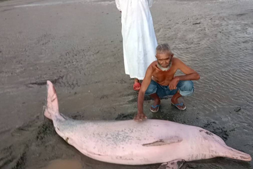ผู้ช่วยผู้ใหญ่บ้านบูโบย หมู่ที่ 3 ต.แหลมสน บอกว่า เมื่อ 40 ปีก่อนเคยเจอวาฬขนาดใหญ่ที่ริมชายหาดแห่งนี้ แต่ตายลอยมาติดหาด แต่ไม่เคยเจอโลมาสีชมพู คาดว่า อาจจะพลัดหลง หรือบาดเจ็บมาติดหาด เพราะในช่วง 3-4 วันที่ผ่านมานี้ชายหาดฝั่งนี้ มีคลื่นลมแรงจัดทำให้พัดพาโลมาสีชมพูนี้ มาได้ โดยเบื้องต้นเชื่อว่าน่าจะเป็นเพศผู้