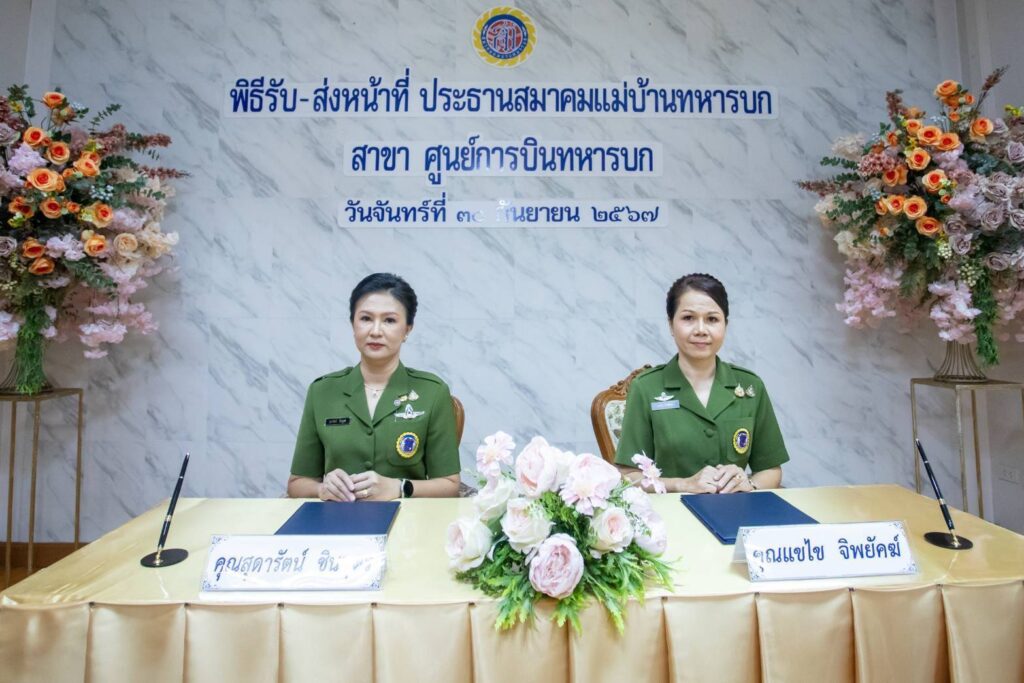 ในขณะเดียวกัน ณ ที่ทำการสมาคมแม่บ้านกองทัพบก สาขา ศูนย์การบินทหารบก ภายในศูนย์การบินทหารบก ก็ได้มีการรับ-ส่งหน้าที่ประธานสมาคมแม่บ้านทหารบก สาขา ศูนย์การบินทหารบก โดยมีนางสุดารัตน์ ชินบุตร ประธานสมาคมแม่บ้านทหารบก สาขา ศูนย์การบินทหารบก (ท่านเก่า) ได้ส่งมอบหน้าที่ให้กับนางแขไข จิพยัคฆ์ เป็นประธานสมาคมแม่บ้านทหารบก สาขา ศูนย์การบินทหารบก (ท่านใหม่)ทำหน้าที่ต่อไป