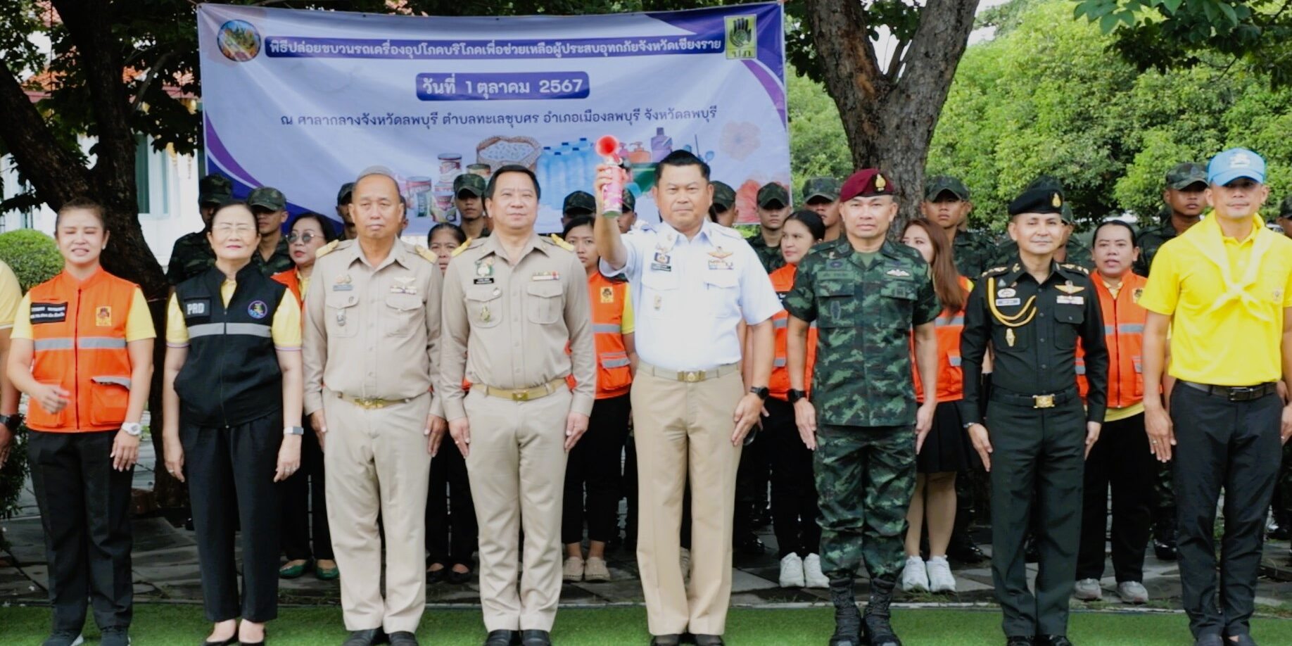 วันที่ 1 ตุลาคม 2567 เวลา 08.45 น. ที่ บริเวณลานหน้าหอพระไพรีพินาศ ศาลากลางจังหวัดลพบุรี นายปรัญชา เปปะตัง รองผู้ว่าราชการจังหวัดลพบุรี เป็นประธานปล่อยขบวนรถเครื่องอุปโภค – บริโภค เพื่อช่วยเหลือผู้ประสบอุทกภัยจังหวัดเชียงราย โดยมี หัวหน้าส่วนราชการ ทหาร ตำรวจ หน่วยงานที่เกี่ยวข้อง และทหารจิตอาสา ร่วมนำสิ่งของไปช่วยเหลือผู้ประสบภัยน้ำท่วมจังหวัดเชียงราย