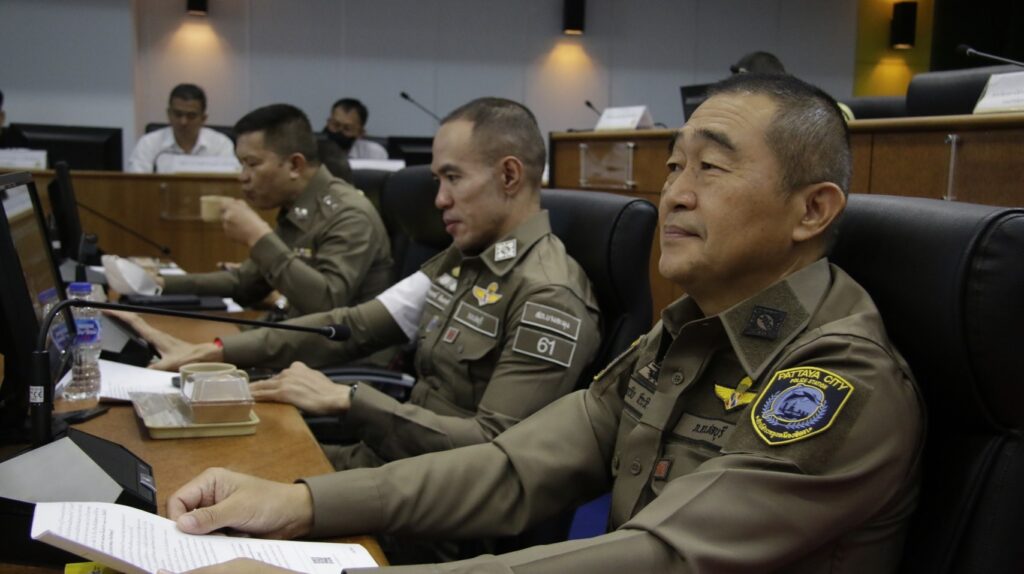 โดยมี นายวินัย อินทร์พิทักษ์ นายกเทศมนตรีเมืองหนองปรือ, องค์กรปกครองส่วนท้องถิ่นเขตอำเภอบางละมุง, ข้าราชการตำรวจ, หัวหน้าส่วนราชการ, หน่วยงานที่เกี่ยวข้อง เข้าร่วมประชุม