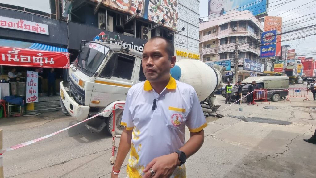 จากการสอบถาม ร.ต.อ.ดร.ตรีลุพธ์ ธูปกระจ่าง นายกเทศมนตรีนครรังสิต บอกว่าได้รับแจ้งจากชาวบ้านว่ามีรถปูนคันดังกล่าวขับย้อนศร เข้ามาถนนซอยหมู่บ้าน ซึ่งเป็นถนนวันเวย์ และจุดดังกล่าวเป็นโรงสูบน้ำของหมู่บ้าน เวลาฝนตกหนัก จุดนี้จะเป็นที่ตั้งเครื่องสูบน้ำขนาดใหญ่ ซึ่งปกติจะไม่ให้รถใหญ่ย้อนหรือวิ่งเข้ามาเนื่องจากมีการทรุดตัวอยู่แล้วและข้างล่างจะเป็นดินโพรง เนื่องจากเป็นทางแยกขอแนวท่อน้ำประปา และท่อน้ำทิ้งซึ่งมีมา 20 กว่าปีแล้ว ทางเทศบาลได้นำแผงเหล็กและแนวกั้นมากั้นไว้ และอยู่ระหว่างซ่อมแซม แต่ทางคนขับรถปูนก็ยังผ่าฝืนแนวกั้นเข้ามาได้ ทำให้ถนนพังจนได้ ซึ่งส่งผลกระทบทำให้การจราจรในซอยนี้ติดขัด เพราะมีประชากรในหมู่บ้านเข้าออกจำนวนมาก