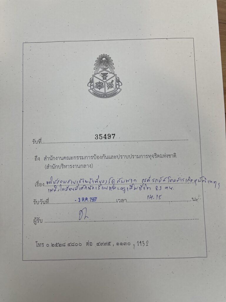 ตนในฐานะอดีตสมาชิกสภาผู้แทนราษฎร พรรคประชาธิปัตย์ ขอให้สำนักงาน ป.ป.ช. ดำเนินการสอบสวนเจ้าหน้าที่ของรัฐกับพวกซึ่งมีอำนาจหน้าที่ตามกฎหมาย ส่อว่าปฏิบัติหรือละเว้นการปฏิบัติหน้าที่โดยมิชอบหรือทุจริตหรือไม่ ดังนี้