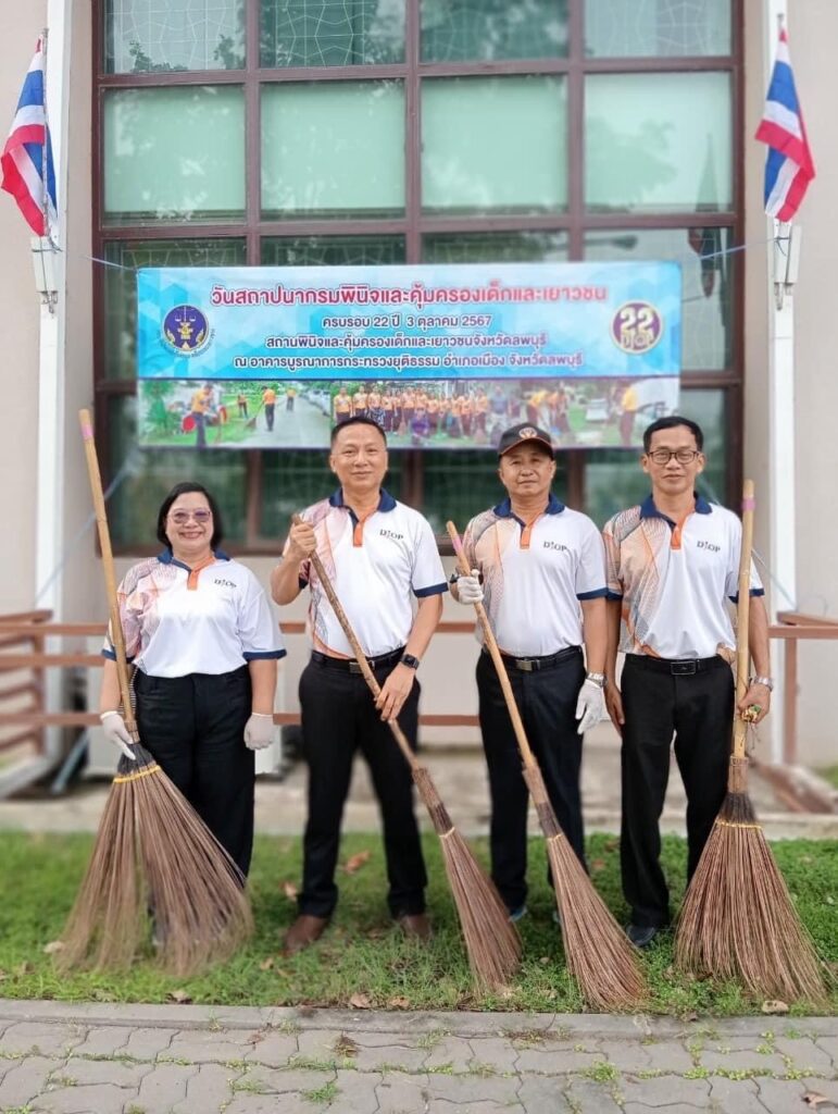 นายผดุงศักดิ์ จุลพันธ์ ผู้อำนวยการสถานพินิจและ คุ้มครองเด็กและเยาวชนจังหวัดลพบุรี และคณะเจ้าหน้าที่ พร้อมด้วยนางภิรมย์รัช เปาริก ประธานกรรมการ สงเคราะห์เด็กและเยาวชนสำหรับสถานพินิจและคุ้มครองเด็กและเยาวชนจังหวัดลพบุรี และคณะกรรมการ สงเคราะห์ฯ ได้ดำเนินการจัดโครงการพินิจลพบุรี ทำดีด้วยหัวใจ เนื่องในโอกาสวันคล้ายวันสถาปนา ครบรอบ 22 ปี กรมพินิจและคุ้มครองเด็กและเยาวชน มีการจัดกิจกรรมทำความสะอาด ปรับปรุงภูมิทัศน์ พื้นที่บริเวณ โดยรอบสถานพินิจและคุ้มครองเด็กและเยาวชนจังหวัดลพบุรี อาคารบูรณาการกระทรวงยุติธรรม จังหวัดลพบุรี