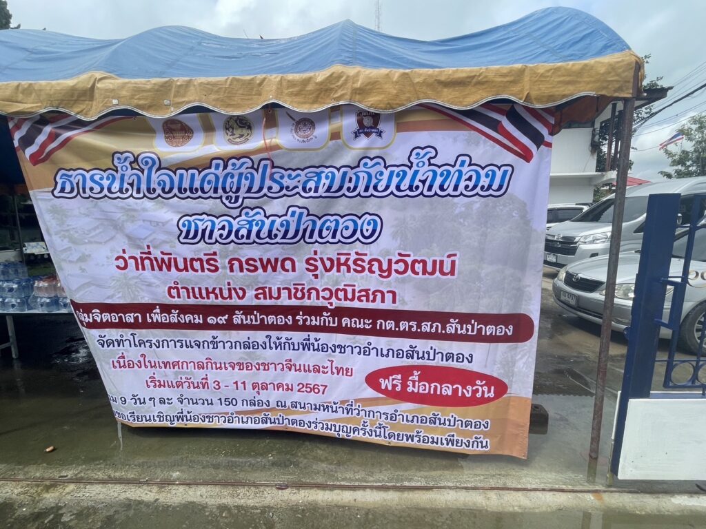 ทีมงานได้เริ่มมอบข้าวกล่องอาหารเจเป็นมื้อกลางวัน ตั้งแต่วันที่ 3 ถึง 11 ตุลาคม 2567 รวม 9 วัน และมอบข้าวสารอาหารแห้งน้ำดื่มกว่า 500 แพ็ค เพื่อช่วยบรรเทาความเดือดร้อนและส่งเสริมการสืบทอดวัฒนธรรมในช่วงเทศกาลกินเจให้กับชาวบ้านในพื้นที่อย่างต่อเนื่อง