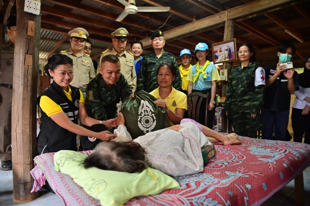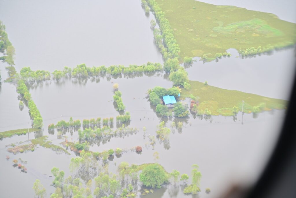 พลโท บุญสิน พาดกลาง แม่ทัพภาคที่ 2 ตรวจเยี่ยมให้กำลังใจเจ้าหน้าที่ และผู้ประสบอุทกภัยในพื้นที่จังหวัดหนองคาย โดยเดินทางด้วย เฮลิคอปเตอร์ (ฮ.ท.139) จาก สนามบิน ทบ.สุรนารี อ.เมือง จ.นครราชสีมา ลาดตระเวนทางอากาศ ติดตามสถานการณ์น้ำตามลำแม่น้ำโขงในพื้นที่ อ.ศรีเชียงใหม่, อ.ท่าบ่อ, อ.เมือง, อ.โพนพิสัย และเยี่ยมให้กำลังใจ พร้อมกับมอบถุงยังชีพให้กับประชาชน และผู้ป่วยติดเตียง ที่ประสบอุทกภัย ในพื้นที่ บ.ดงบัง หมู่ 3 ต.นาหนัง อ.โพนพิสัย จ.หนองคาย ซึ่งมีประชากร 422 คน 99 ครัวเรือน หมู่บ้านตั้งอยู่บนที่ดอน พื้นที่สูง โดยรอบเป็นที่ลุ่มต่ำคล้ายแอ่งกระทะ เมื่อวันที่ 15 ก.ย.67 เกิดเหตุการณ์น้ำโขงเอ่อล้นตลิ่ง และฝนตกหนักในพื้นที่ ส่งผลให้เกิดน้ำท่วมขังพื้นที่ทางการเกษตรและบ้านเรือนประชาชนบางส่วน รวมถึงถนนที่ใช้ในการสัญจร ไม่สามารถใช้การได้ ลักษณะเหมือนติดบนเกาะ จนเมื่อวันที่ 28 ก.ย.67 ฝนทิ้งช่วง ปัจจุบันน้ำลดระดับลงแล้ว สามารถใช้เส้นทางสัญจรไปมาได้เกือบเป็นปกติมีเพียงบางช่วงที่มีน้ำท่วมพาดผ่านถนน พื้นที่ได้รับความเสียหาย เป็นบ้านเรือนประชาชน 2 หลัง พื้นที่ทางการเกษตร เสียหายรวม 2,800 กว่าไร่ ส่วนใหญ่เป็นไร่นา