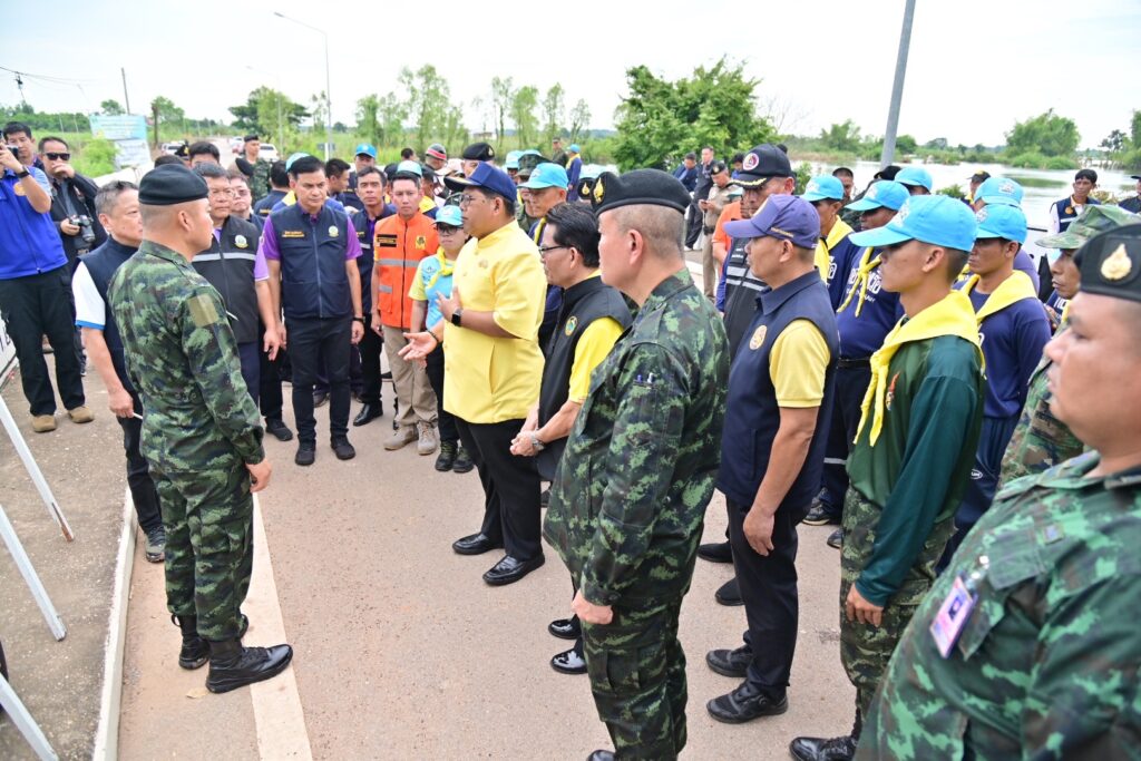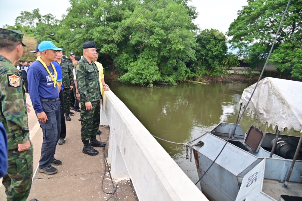 จากนั้น เดินทางไปที่สะพานห้วยน้ำสวย บ.นาเมย ต.เหล่าต่างคำ อ.โพนพิสัย จ.หนองคาย เพื่อรับทราบสถานการณ์น้ำและการช่วยเหลือประชาชน โดยมีศูนย์บรรเทาสาธารณภัย มณฑลทหารบกที่ 24, สำนักงานป้องกัน และบรรเทาสาธารณภัยจังหวัดหนองคาย, โครงการชลประทานหนองคาย และหน่วยเรือรักษาความสงบเรียบร้อย ตามลำแม่น้ำโขง เขตหนองคาย ร่วมต้อนรับและให้ข้อมูลทราบว่าการติดตั้งเรือผลักดันน้ำ เร่งระบายน้ำลงแม่น้ำโขง ในพื้นที่ จ.หนองคาย ใช้กำลังพล 38 นาย และเรือผลักดันน้ำ 10 ลำ ตั้งแต่เวลา 08.00 – 18.00 น. ในจุดที่ 1 เดินเครื่องเรือผลักดันน้ำ 4 ลำ ที่สะพานห้วยน้ำสวย ต.เหล่าต่างคำ อ.โพนพิสัย ผลักดันน้ำได้จำนวน 222,000 ลูกบาศก์เมตร ระดับน้ำลดลง 8 ซม. และ จุดที่ 2 ที่สะพาน 110 ปี ท่าบ่อ ต.น้ำโมง อ.ท่าบ่อ จ.หนองคาย ผลักดันน้ำได้จำนวน 333,000 ลูกบาศก์เมตร ระดับน้ำลดลง 8 ซม. พร้อมทั้งมอบสิ่งของเป็นกำลังใจให้แก่ทหารเรือเพื่อนร่วมอาชีพ ทหารหาญ ประชาชนจิตอาสา ก่อนเดินทางกลับ ได้มอบเครื่องอุปโภคบริโภคแก่ เด็กนักเรียนโรงเรียนบ้านโคกหัวภู ต.เหล่าต่างคำ อ.โพนพิสัย จ.หนองคาย อีกด้วย