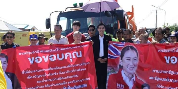 เมื่อวันที่ 5 ต.ค.67 เวลา 10.00 น.ชาวบ้านตำบลบ้านงิ้ว และตำบลบ้านปทุม อำเภอสามโคก จังหวัดปทุมธานี รวมตัวกัน กล่าวขอบคุณรัฐบาล นำโดยนางสาวแพทองธาร ชินวัตร นายกรัฐมนตรี พร้อมคณะรัฐบาล ที่ได้ให้ความช่วยเหลือ นำเครื่องสูบน้ำเข้ามาติดตั้งที่ประตูระบายน้ำคลองคู และติดตั้งเสาไฟฟ้าและหม้อแปลงขนาดใหญ่ ทดแทนหม้อแปลงเดิมที่ชำรุดมากว่า 6 เดือน โดยในวันนี้ ดร.พร้อมพงศ์ นพฤทธิ์ อดีตโฆษกพรรคเพื่อไทย ซึ่งได้รับเรื่องร้องเรียนจากชาวบ้าน และประสานการช่วยเหลือ ไปยังรัฐบาล ได้ลงพื้นที่ติดตามยังประตูระบายน้ำคลองคู ตำบลบ้านงิ้ว ซึ่งทางการไฟฟ้ากำลังดำเนินการซ่อมแซมติดตั้งเสาไฟฟ้าและหม้อแปลงขนาดใหญ่ เพื่อรองรับการทำงานของเครื่องสูบน้ำให้เร่งสูบน้ำออกจากคลองคู บรรเทาความเดือดร้อนของชาวบ้านโดยมี นายศรัณย์ เกตุทอง นายอำเภอสามโคก ผู้นำองค์กรปกครองส่วนท้องถิ่น กำนัน ผู้ใหญ่บ้าน และหน่วยงานที่เกี่ยวข้องร่วมลงพื้นที่ ณ บริเวณคลองคู ตำบลบ้านงิ้ว อำเภอสามโคก จังหวัดปทุมธานี